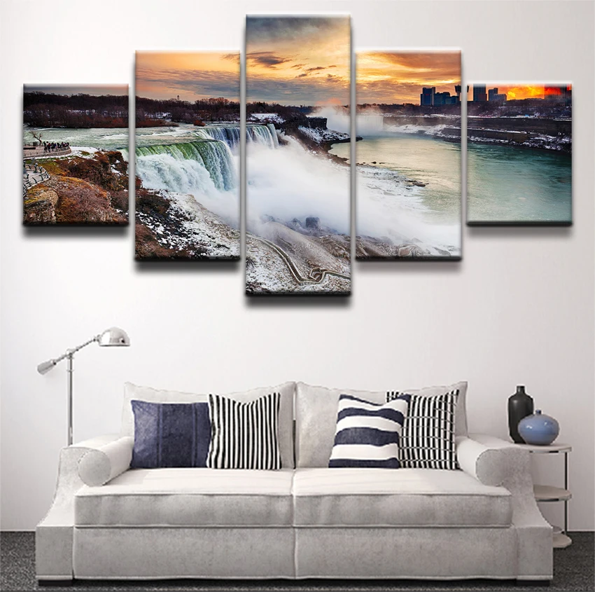 Comprar Modular Fotos Um Conjunto HD Impresso Poster Da Arte Da Parede Da Lona 5 Peças Cachoeira De Paisagem Decorativa Moderna Casa Sala de estar Baratas Online Preço.