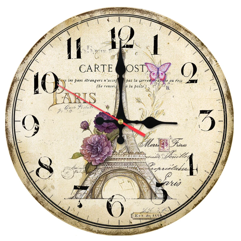 Comprar New hot 2017 relógio de parede de madeira Da Torre Eiffel relógios de Quartzo relógio de decoração para casa moderna círculo único rosto adesivos para sala de estar quarto Baratas Online Preço.