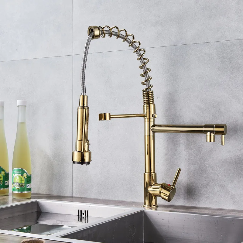 Comprar Níquel escovado Torneira Da Cozinha Da Mola Lateral Giratória Pulverizador Dupla Bico Misturador Da Cozinha Torneira Da Cozinha Pia Torneira Rotação de 360 Baratas Online Preço
