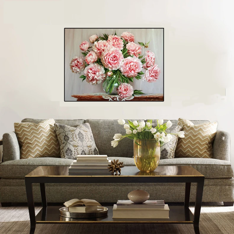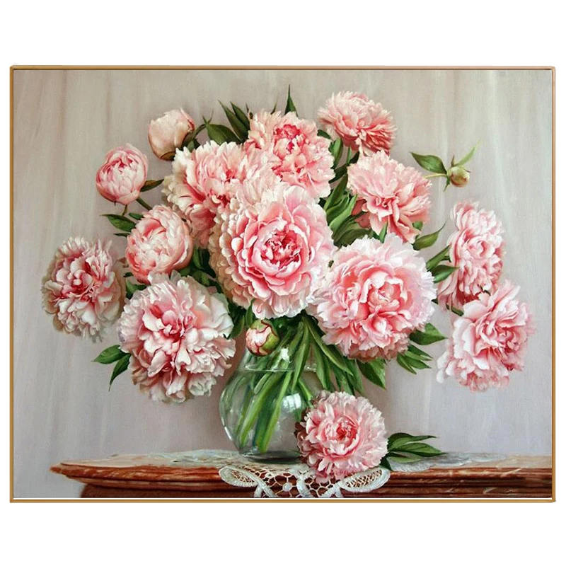 Comprar PHKV Imagem Desenho Coloração Digital Da Lona Pintura A Óleo Por Números Diy Pintura À Mão Artes Parede Home Decor Flor Peônia Rosa Baratas Online Preço.