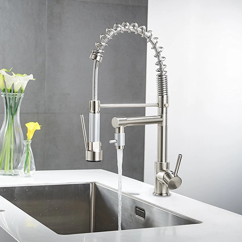 Comprar Promoção Dual Bico Primavera Pull Down Torneira Da Pia Da Cozinha de 360 Graus de Rotação Quente e Fria Torneiras de Água Baratas Online Preço.