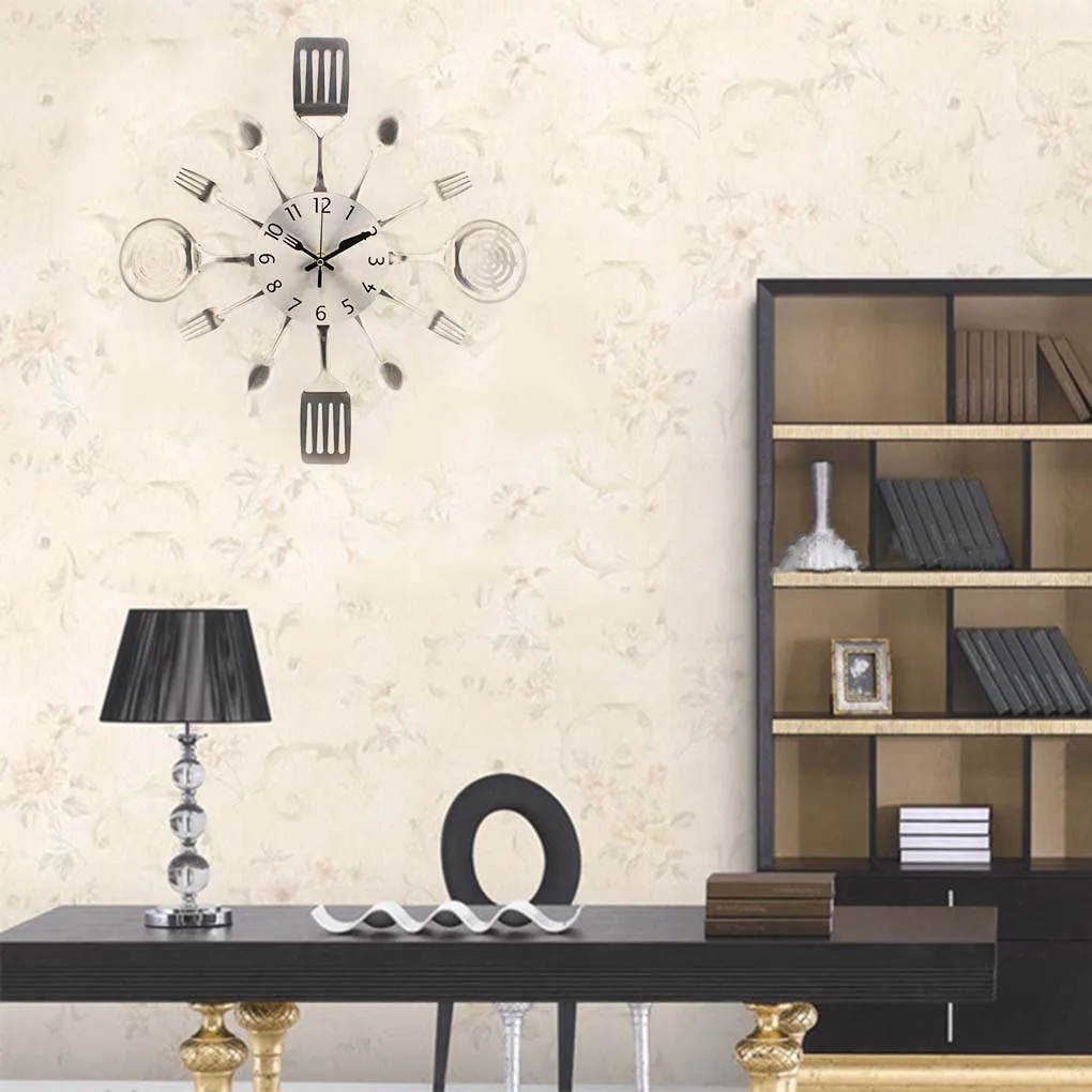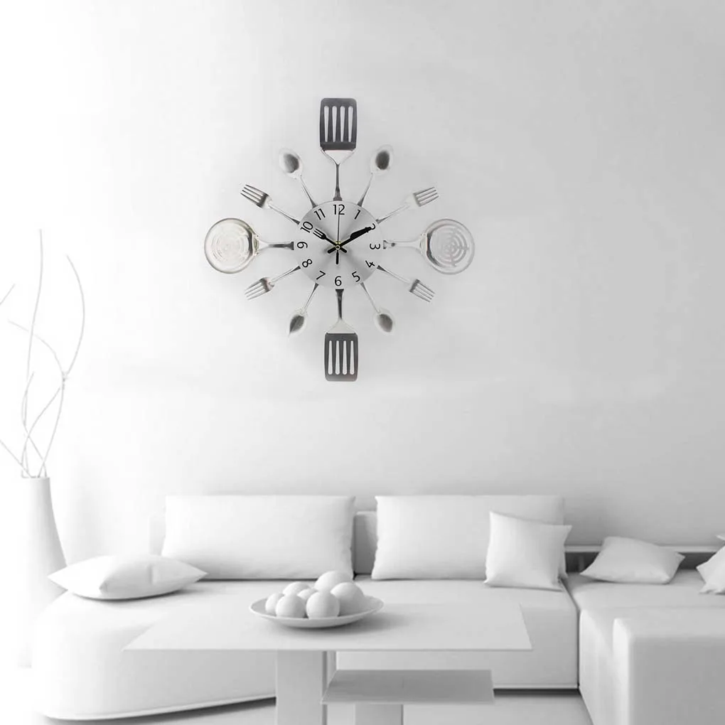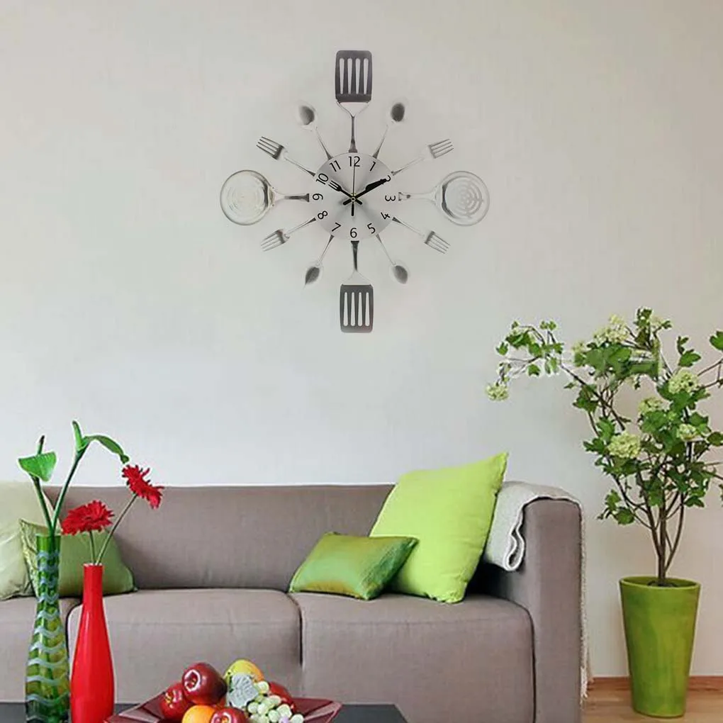 . Melhor Promoção New 3D Removível Cozinha Talheres Colher Garfo Relógio De Parede Moderna Espelho Decalque Da Parede .. Barato Online Preço.