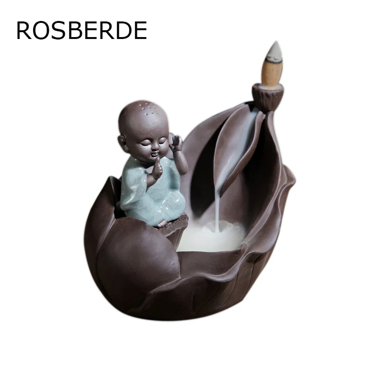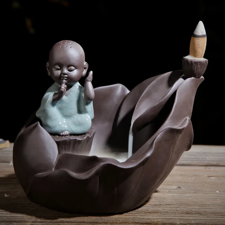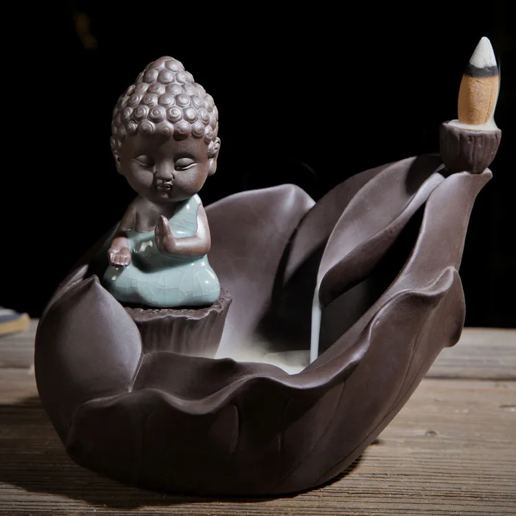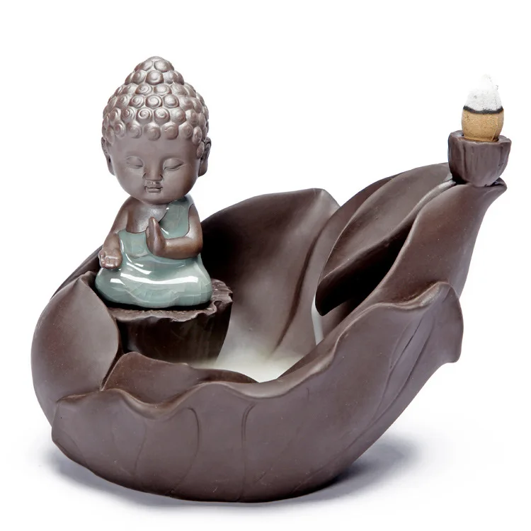 . Melhor Refluxo de cerâmica queimador de incenso Roxo areia incensbase torre forno incenso de sândalo Buddha estátua Taoísmo folha de lótus decoração Barato Online Preço.