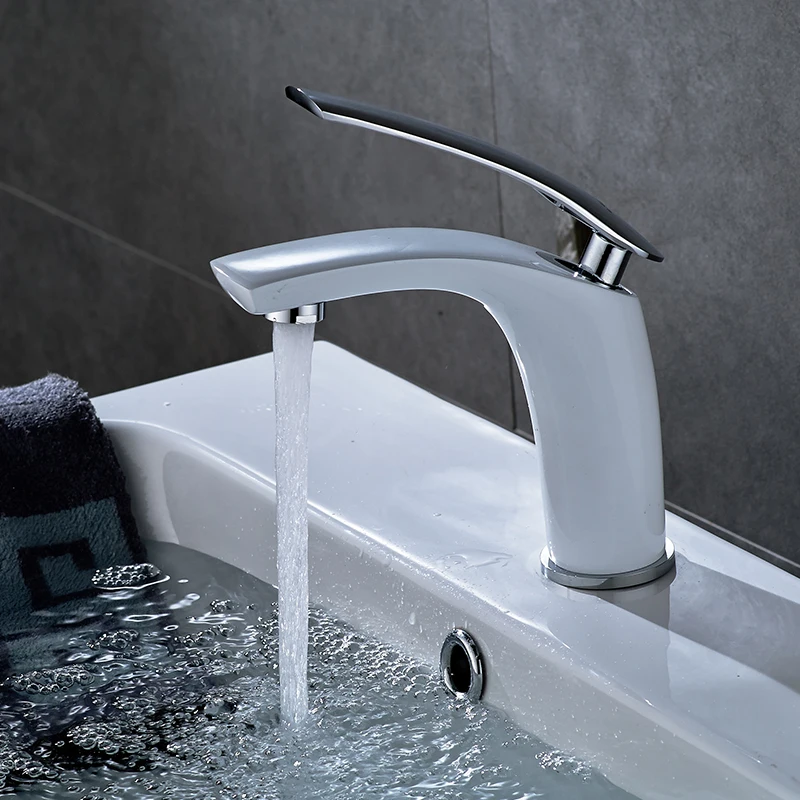 Comprar ROVATE Torneira Da Bacia Branco Rosto Único Titular Único Furo Montado Pia Bacia Torneiras Quente e Fria Misturador para Banheiro Preto tap Baratas Online Preço