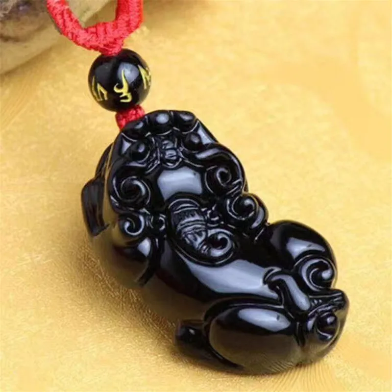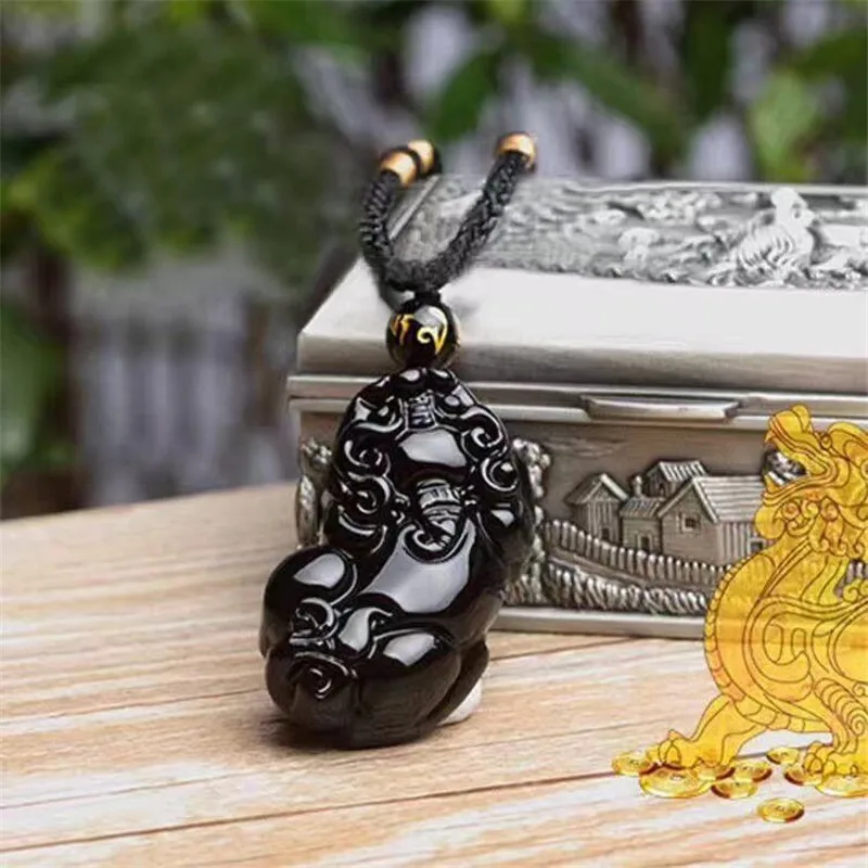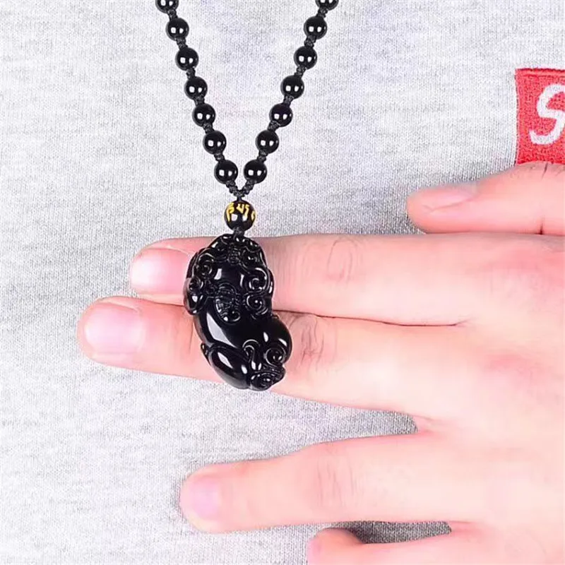 Comprar TNUKK Preto Obsidian Natural Pingente de Pedra Esculpida Animal Homens Colar de Pingente de Pedra Jóias de Jades Pixiu Trazer Riqueza. Baratas Online Preço.