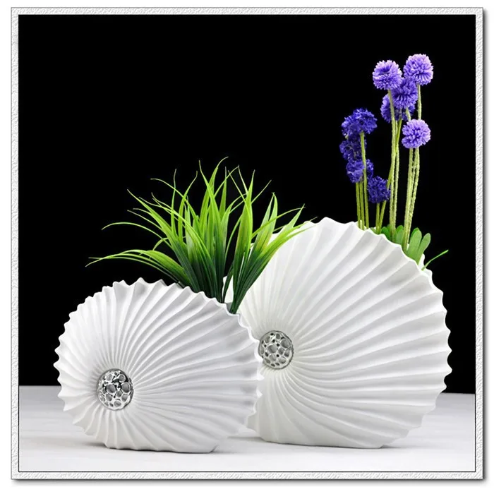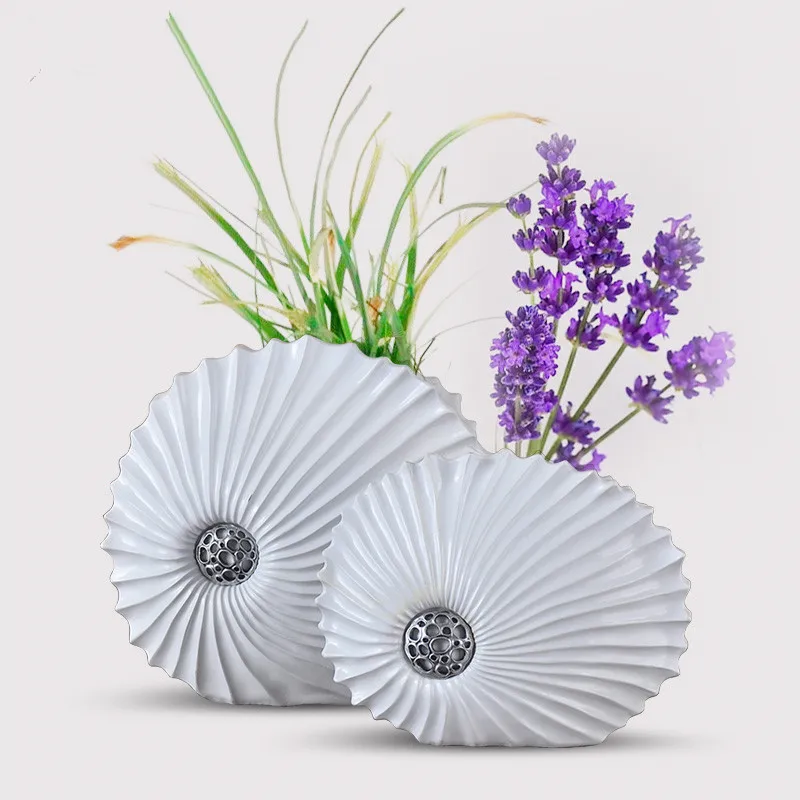 . Melhor Vasos de resina decorativo desktop criativo em forma de concha branca flor decorações de arte vaso grande vaso de flores para casa moderna Barato Online Preço.