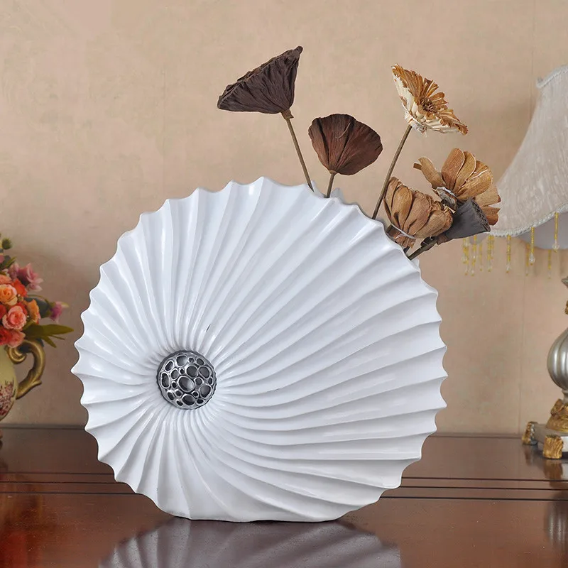 Comprar Vasos de resina decorativo desktop criativo em forma de concha branca flor decorações de arte vaso grande vaso de flores para casa moderna Baratas Online Preço