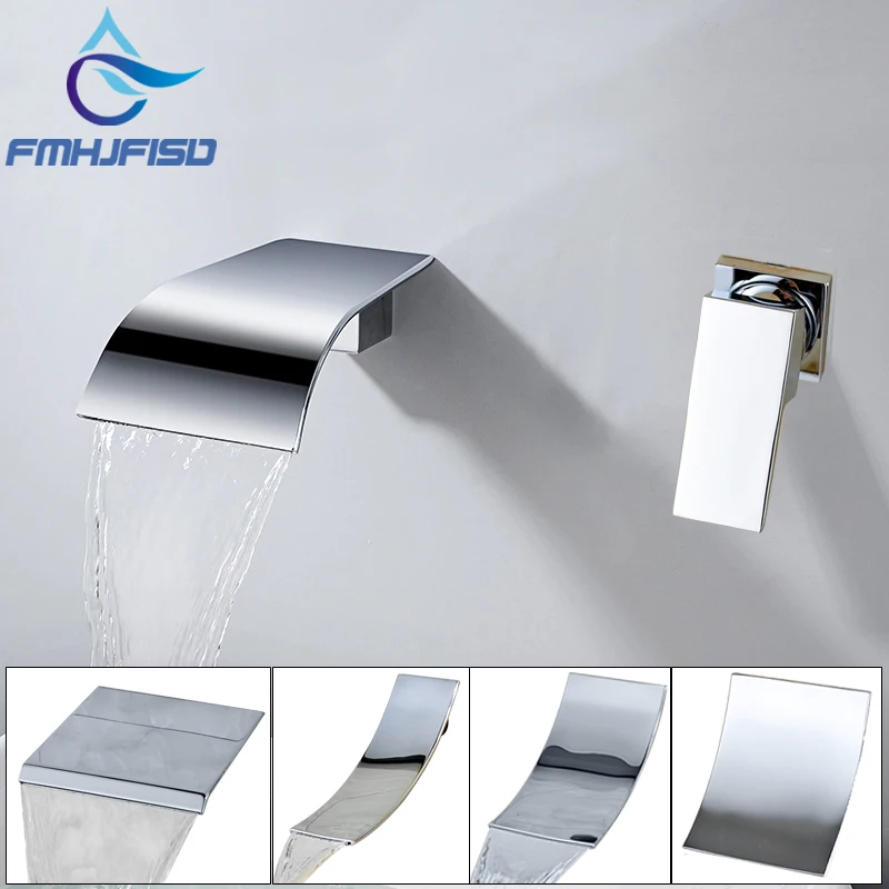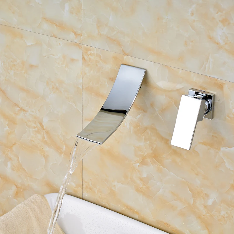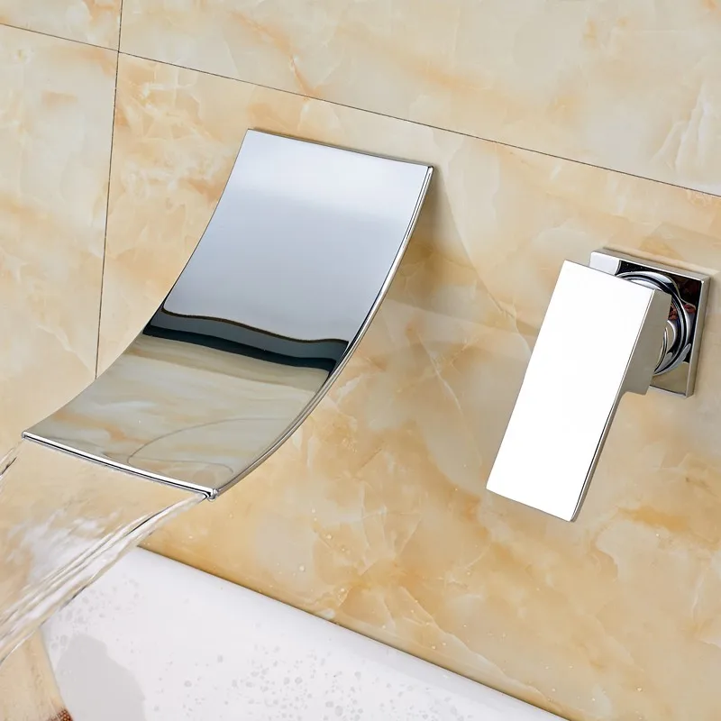 Comprar Wall Mounted Cachoeira Torneiras de Lavatório Generalizada Torneira Da Pia Do Banheiro Do Cromo Polido Torneira Misturadora Único Punho Água Quente E Fria Baratas Online Preço.