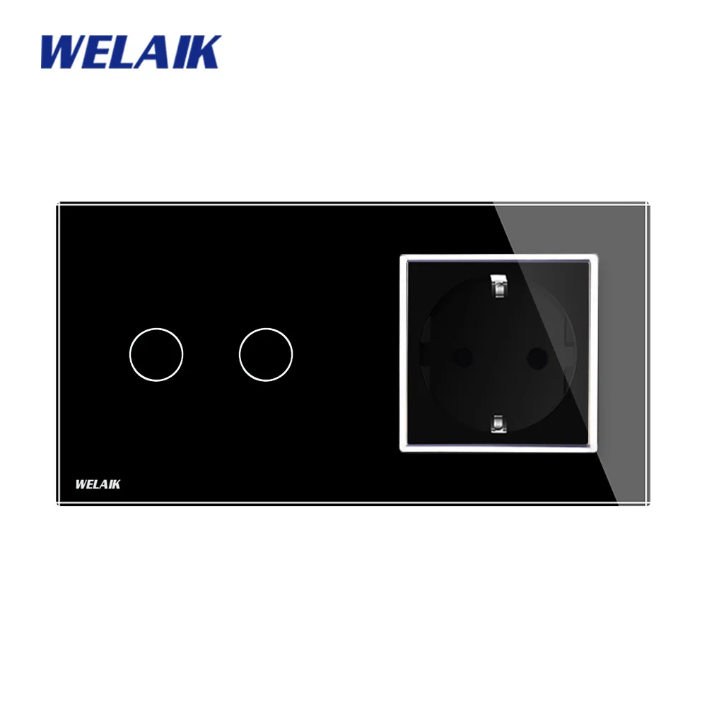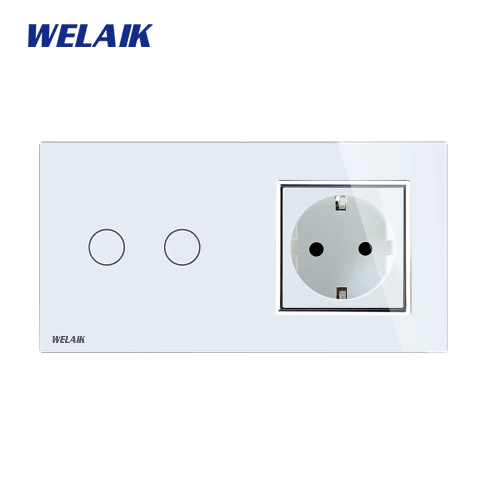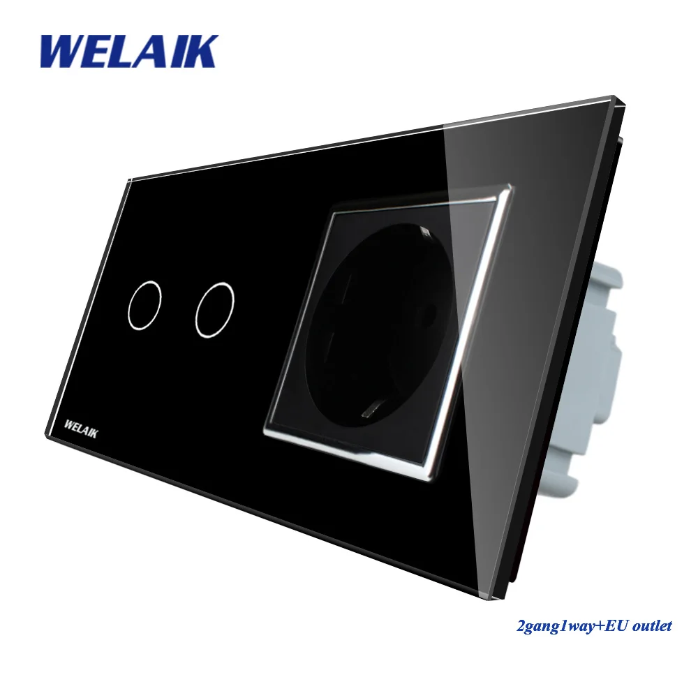 Comprar WELAIK Marca 2 Quadro Tela Painel de Vidro Cristal Interruptor de Toque Interruptor De Parede EUROPEU UE Tomada de Parede 2gang1way AC110 ~ 250 V A29218ECW B Baratas Online Preço