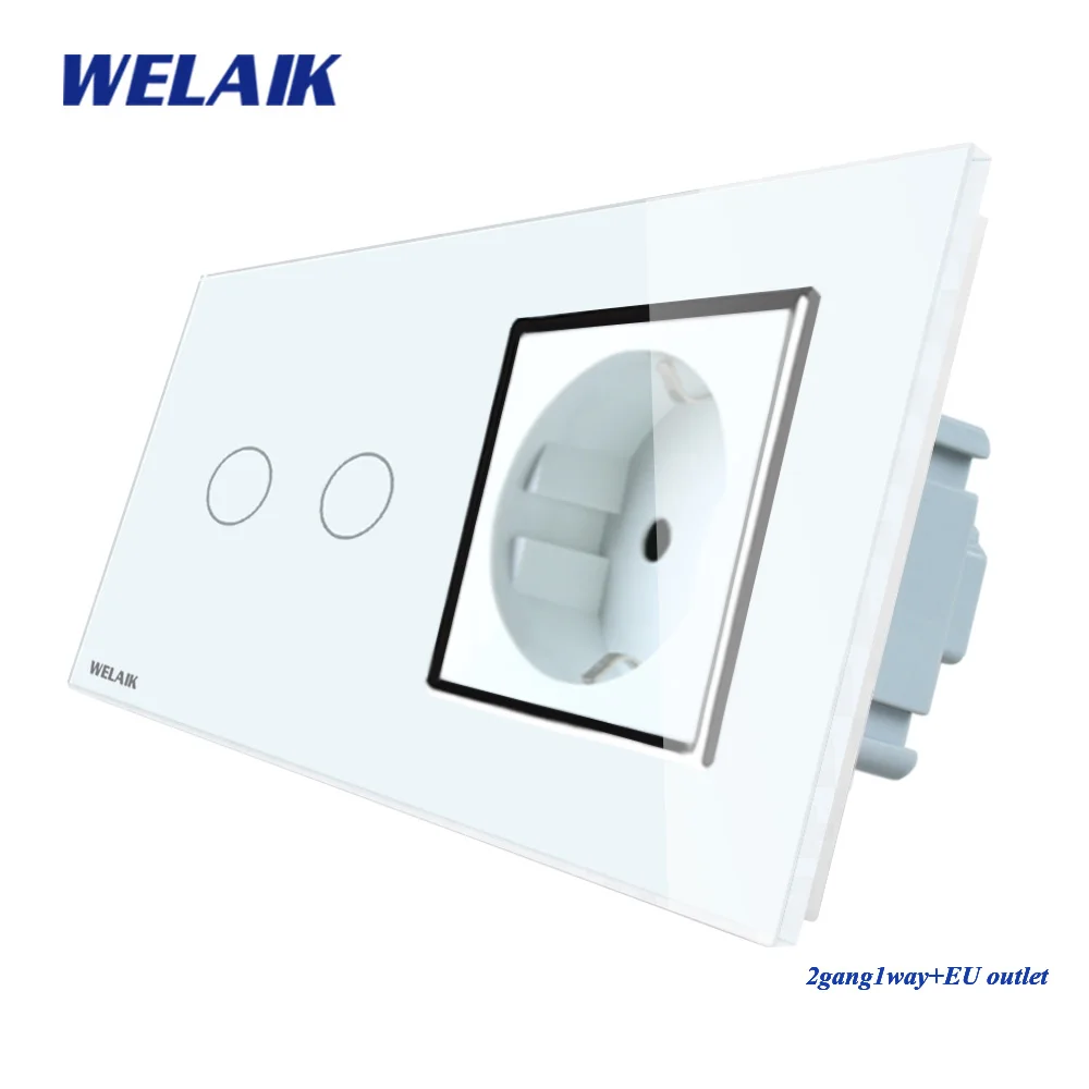 Comprar WELAIK Marca 2 Quadro Tela Painel de Vidro Cristal Interruptor de Toque Interruptor De Parede EUROPEU UE Tomada de Parede 2gang1way AC110 ~ 250 V A29218ECW B Baratas Online Preço.