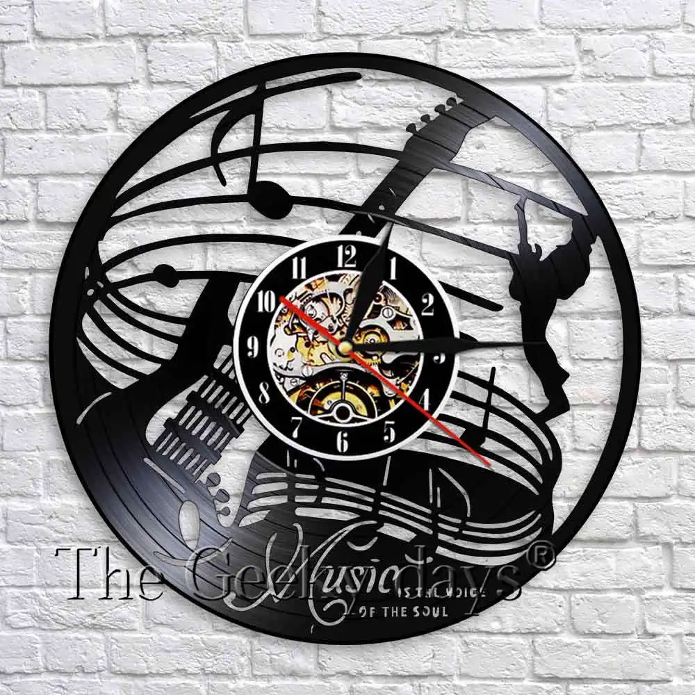 Comprar 1 Peça de Guitarra Instrumento Musical 3D Da Parede Da Arte Decoraitve Música É O Tempo de vida Da Alma Disco de Vinil Relógio De Parede LEVOU Relógio Relógios Baratas Online Preço