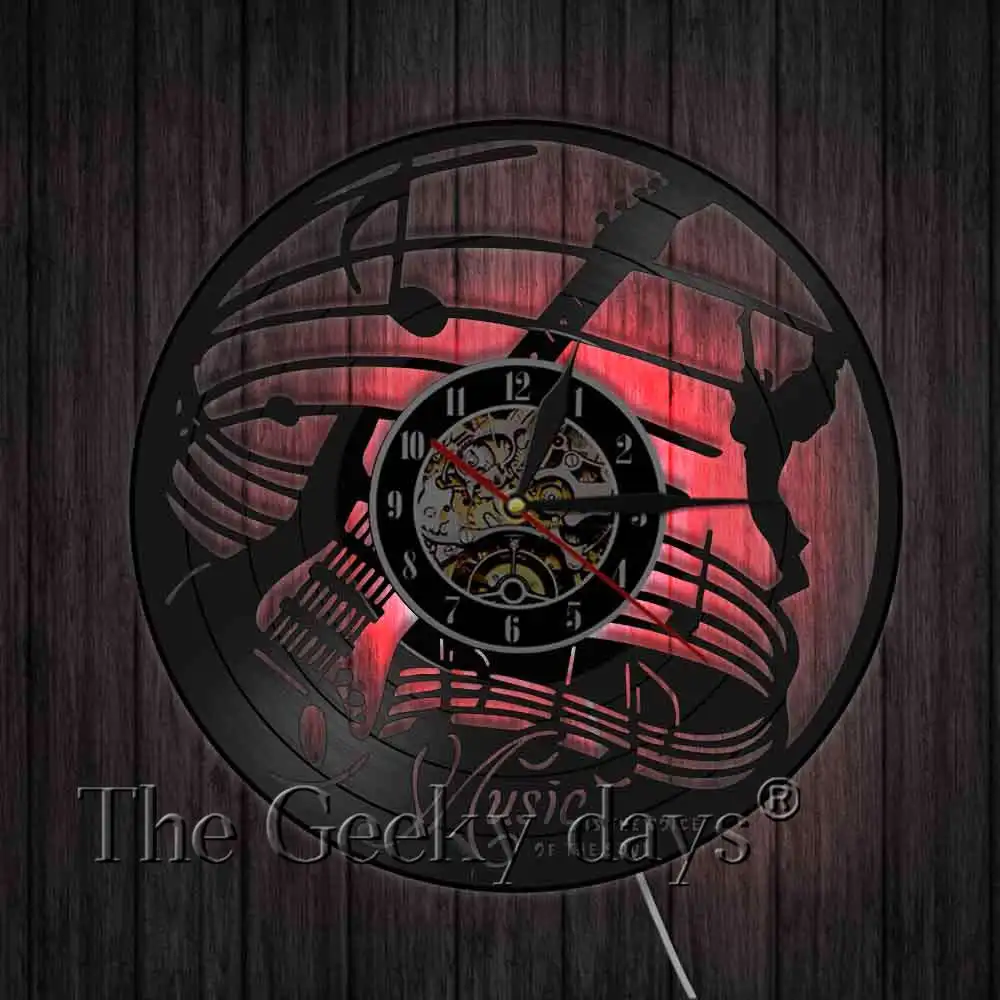 Comprar 1 Peça de Guitarra Instrumento Musical 3D Da Parede Da Arte Decoraitve Música É O Tempo de vida Da Alma Disco de Vinil Relógio De Parede LEVOU Relógio Relógios Baratas Online Preço.