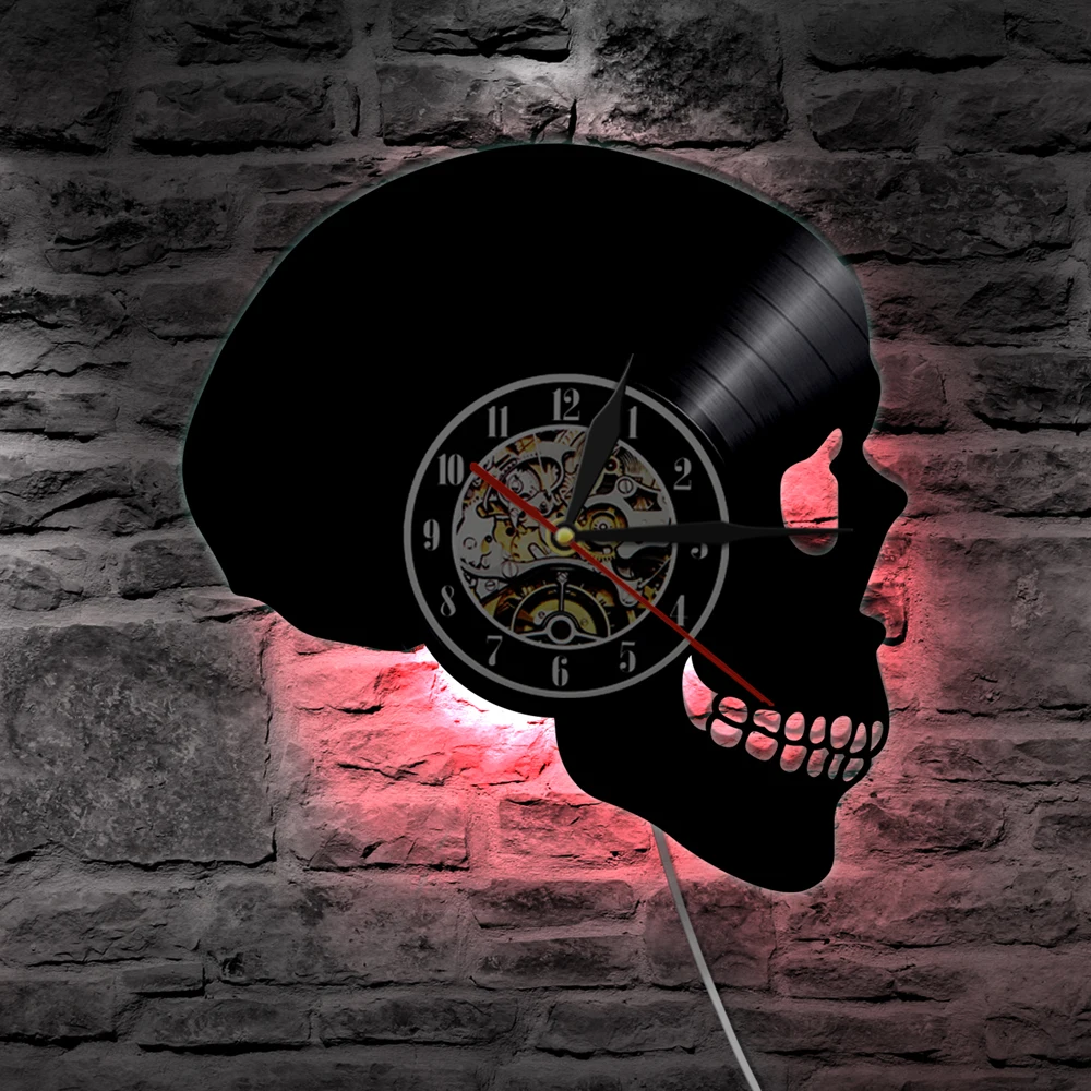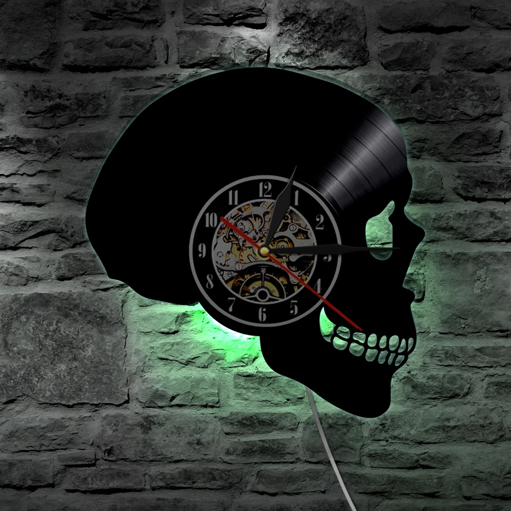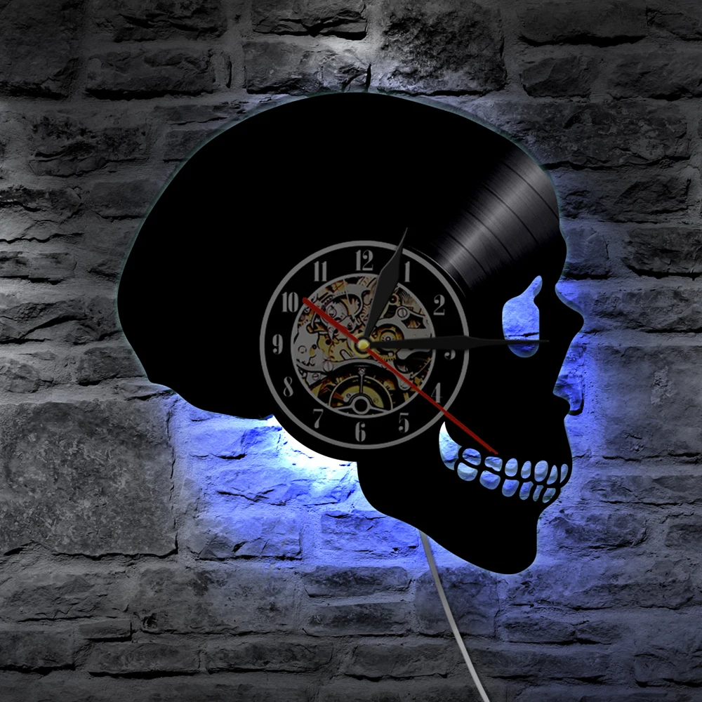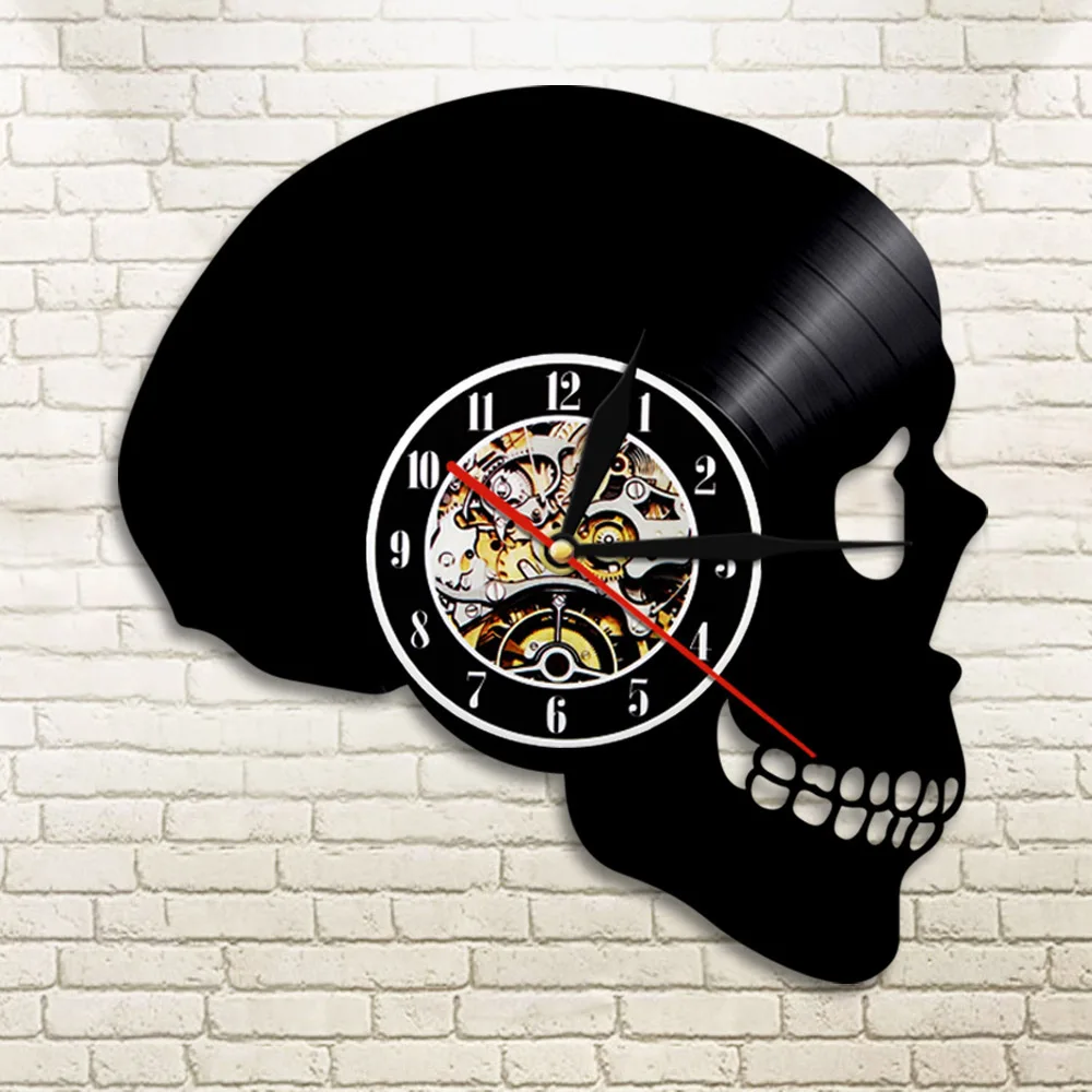 . Melhor 1 peça Handcarved Hippie Crânio Do Crânio Do Açúcar Do Registro de Vinil Relógio De Parede LEVOU Relógio de Parede Dia Dos Mortos a Decoração Da Casa presente do dia das bruxas Barato Online Preço.