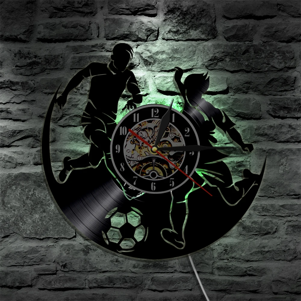 Comprar 1 Peças Jogar Football Soccer Sport LED Silhouette Preto Pendurado Disco de Vinil Mudança de Cor Do Relógio Relógio de Parede Moderno Relógio Do Esporte Ao Ar Livre Baratas Online Preço.