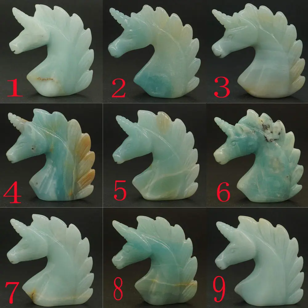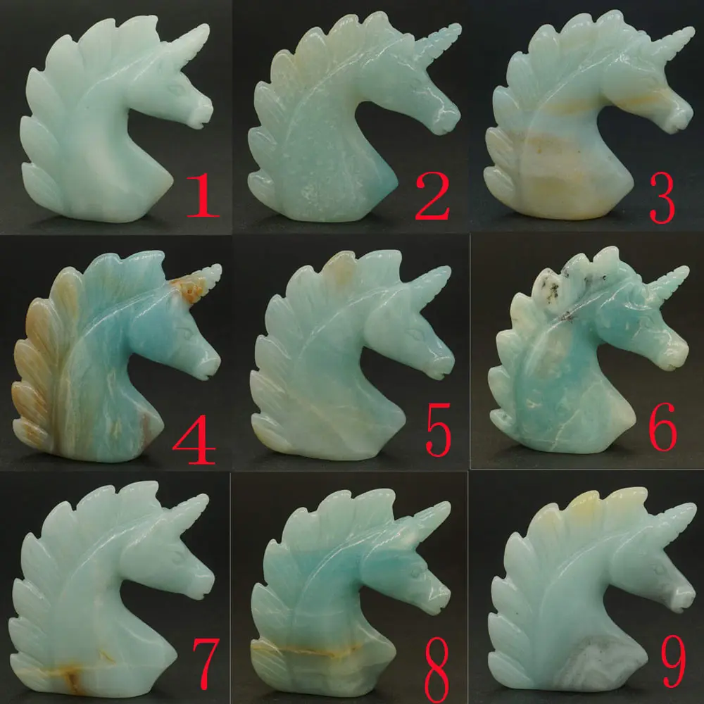 Comprar 2 \"Natural Amazonita Gemstone Cura Reiki Cristal Estatueta Unicórnio Estátua Decoração Da Sua Casa Baratas Online Preço.