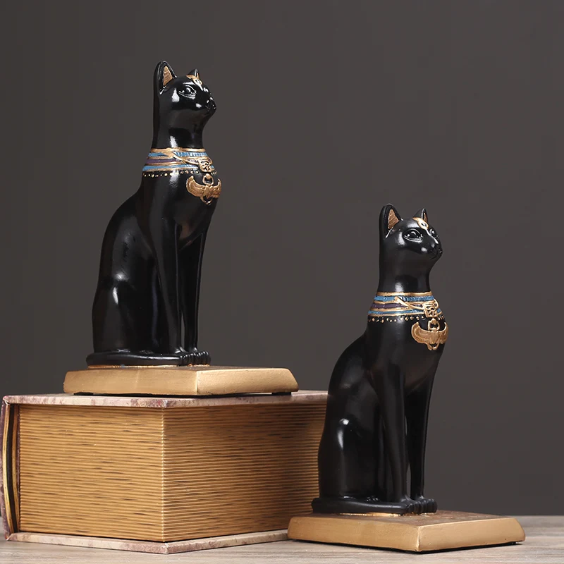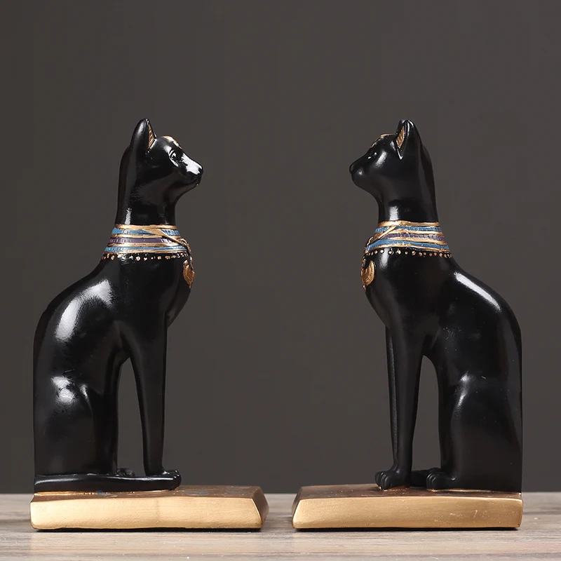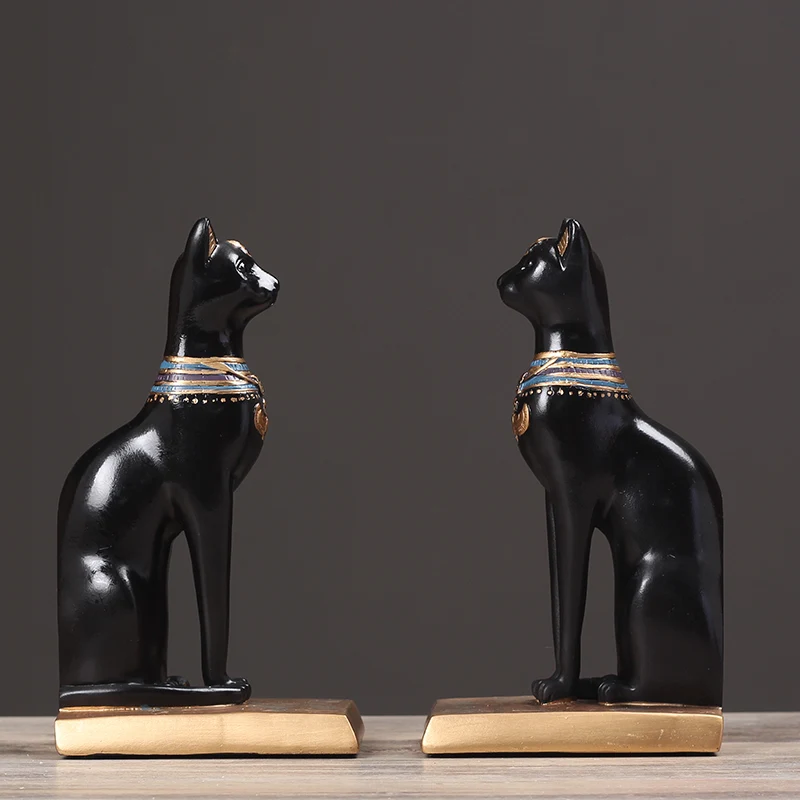 . Melhor 2 PÇS SET Bastet Egípcio Estátua de Deus Gato Gato Estatueta Egito Antigo Bookends Resina Artesanato Escultura Home Decor Desk Barato Online Preço.