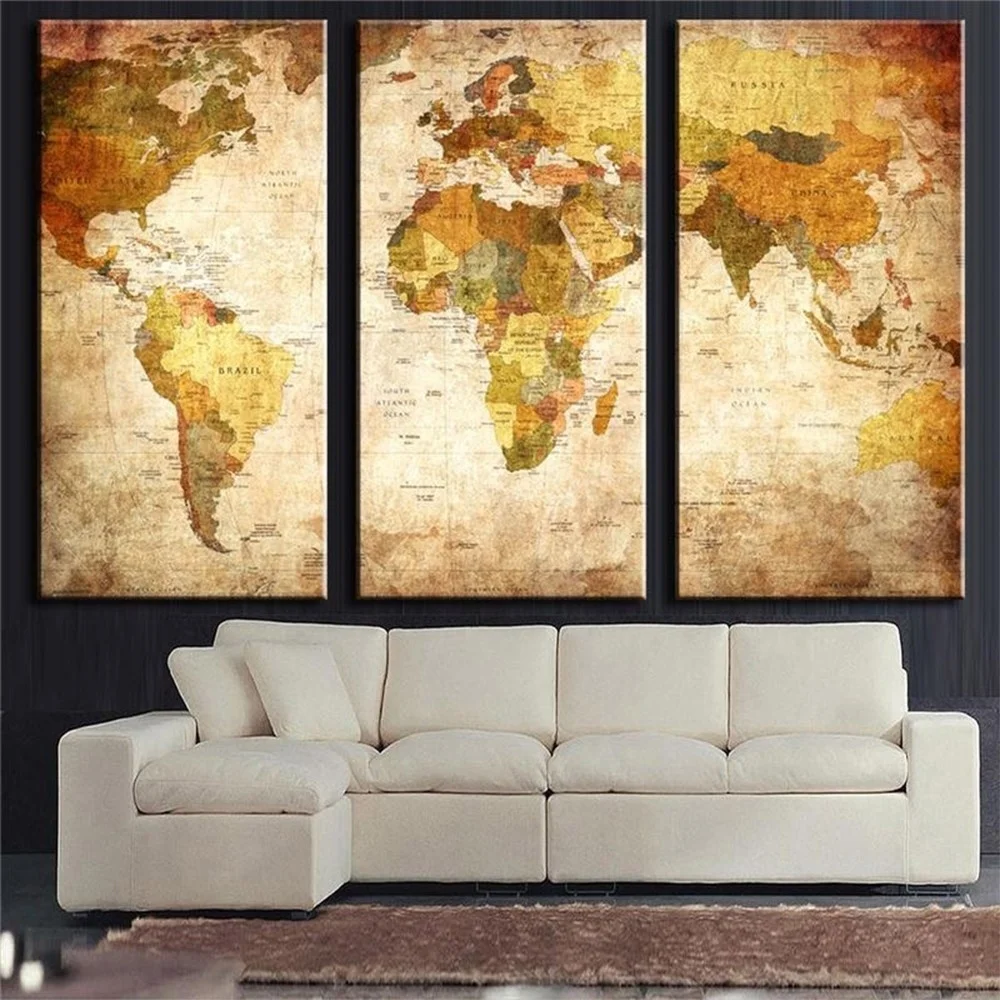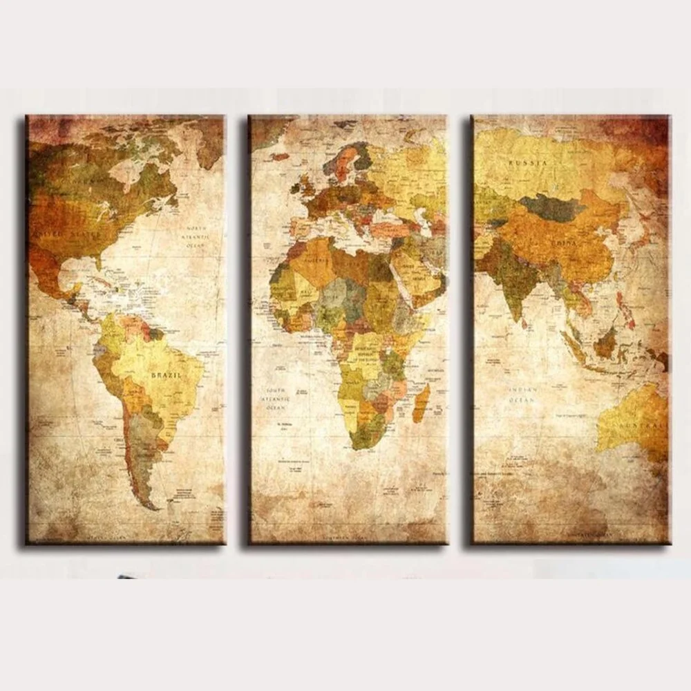 Comprar 3 PCS O Mapa Impresso Pintura Sala Retratos Da Parede Pintura A Óleo Moderna Na Lona Imprime Spray Pintura Sem Moldura Baratas Online Preço