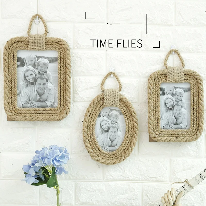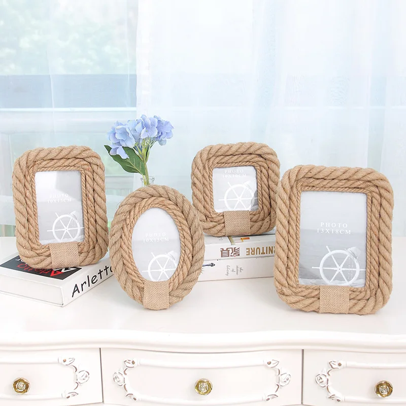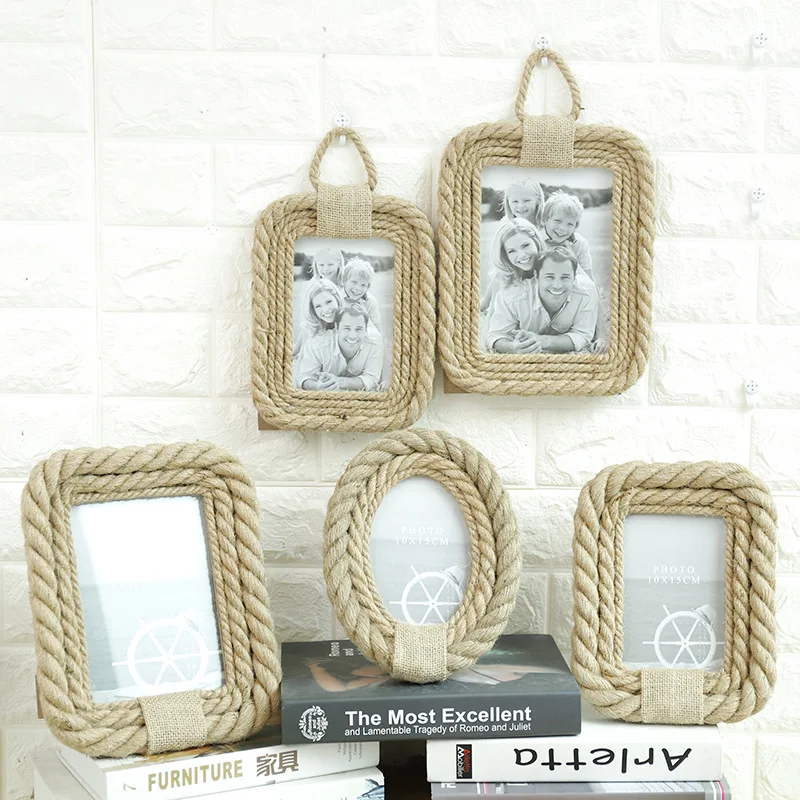 Comprar 4 6 7 Polegada Natural Corda De Cânhamo Do Vintage Photo Frame Vila Americana Retro Quadro de Imagem Casa Arte Da Parede decoração Presente Criativo Baratas Online Preço.