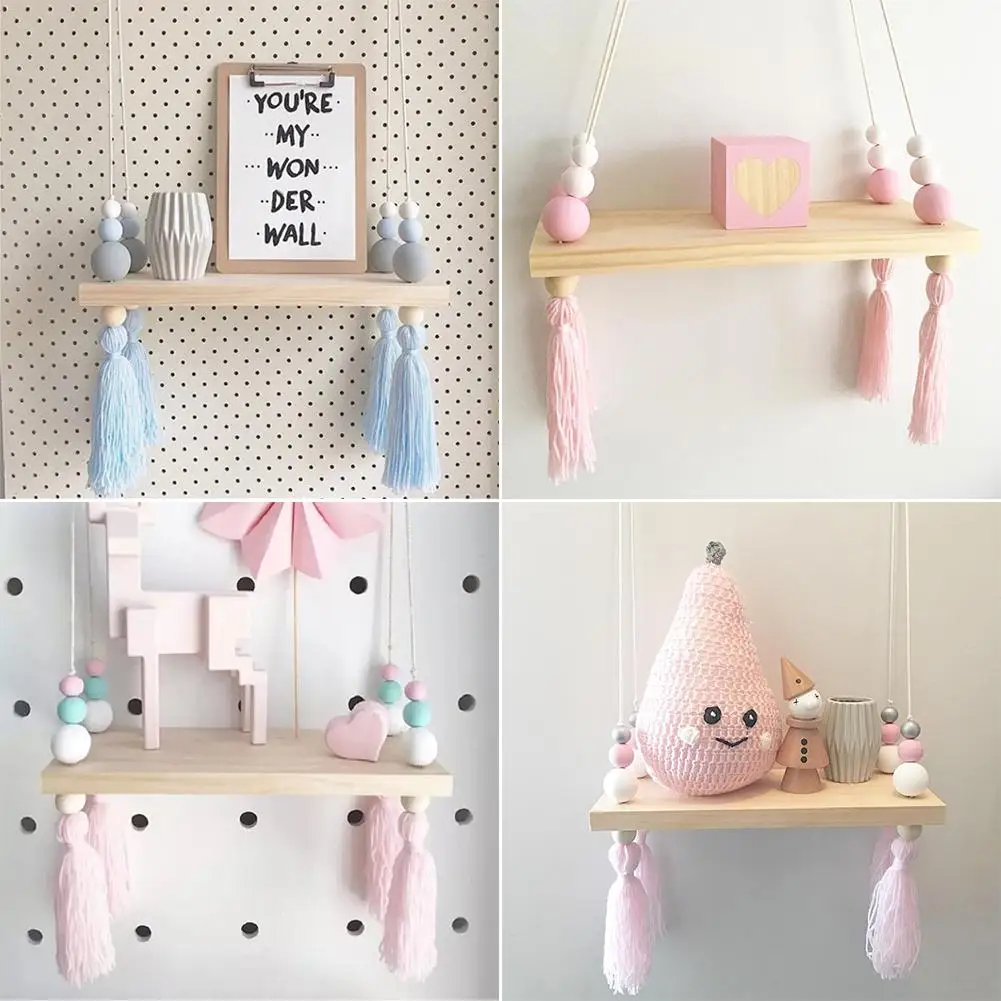 . Melhor Casa Decorações de Estilo nórdico De Armazenamento De Madeira Prateleira de Exposição de Madeira de Pinho Log Contas Prateleiras para Quarto Crianças Decorativa Hanging Stand Barato Online Preço.