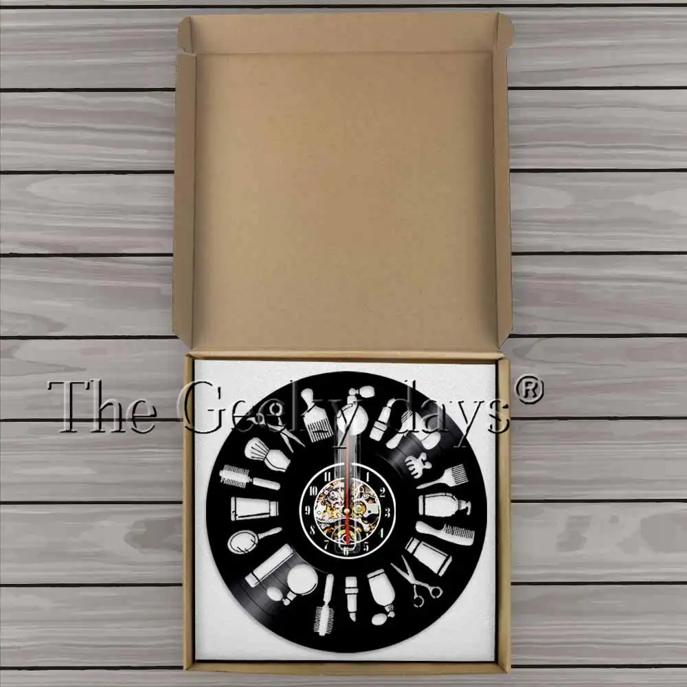 . Melhor Ferramentas de cabeleireiro Logotipo Disco de Vinil Relógio de Parede Equipamentos de Cabeleireiro do Salão de Beleza Barber Shop Decor Handmade Da Parede Da Arte Relógio Barato Online Preço.