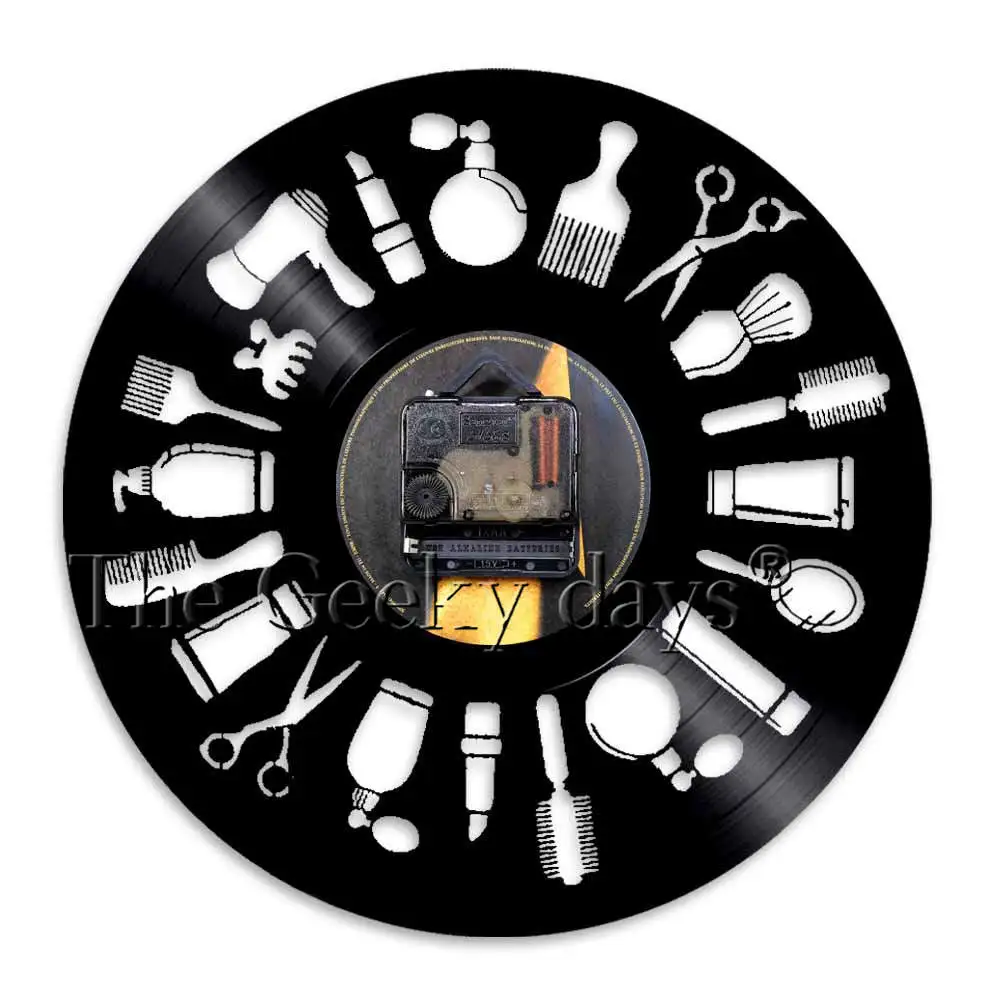 Comprar Ferramentas de cabeleireiro Logotipo Disco de Vinil Relógio de Parede Equipamentos de Cabeleireiro do Salão de Beleza Barber Shop Decor Handmade Da Parede Da Arte Relógio Baratas Online Preço.