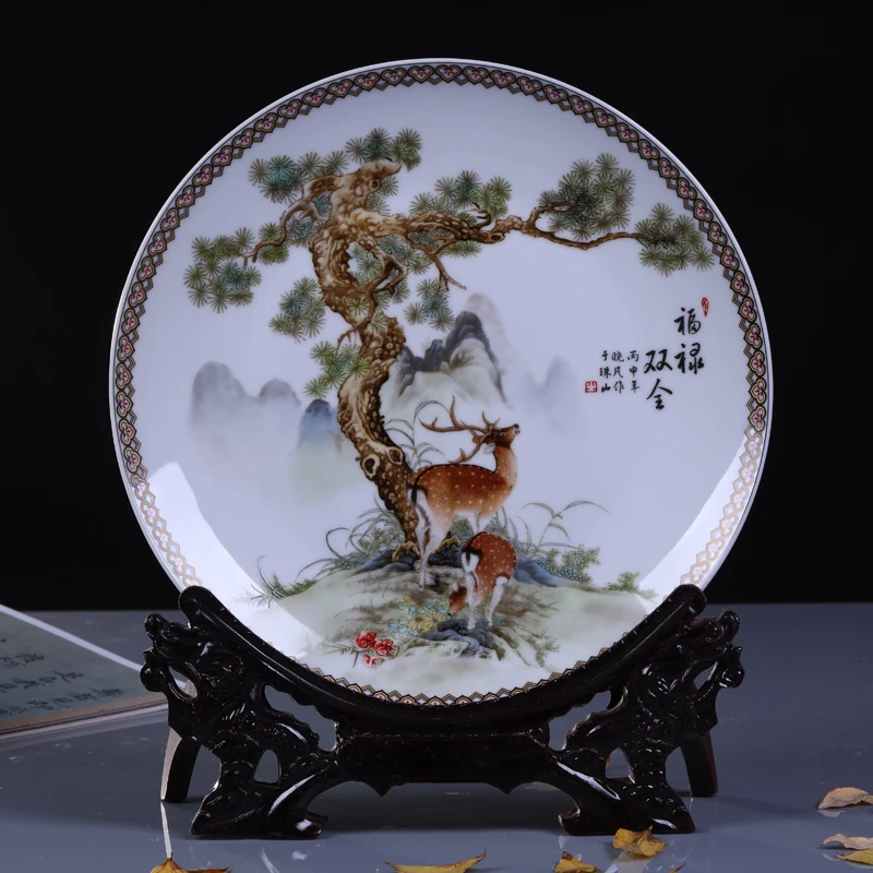 Comprar Jingdezhen Cerâmica Placa Pendurada Placa Decorativa Placa Novo Estilo Chinês de Porcelana de Apreciação Da Arte Para Sala de estar Do Hotel Baratas Online Preço.