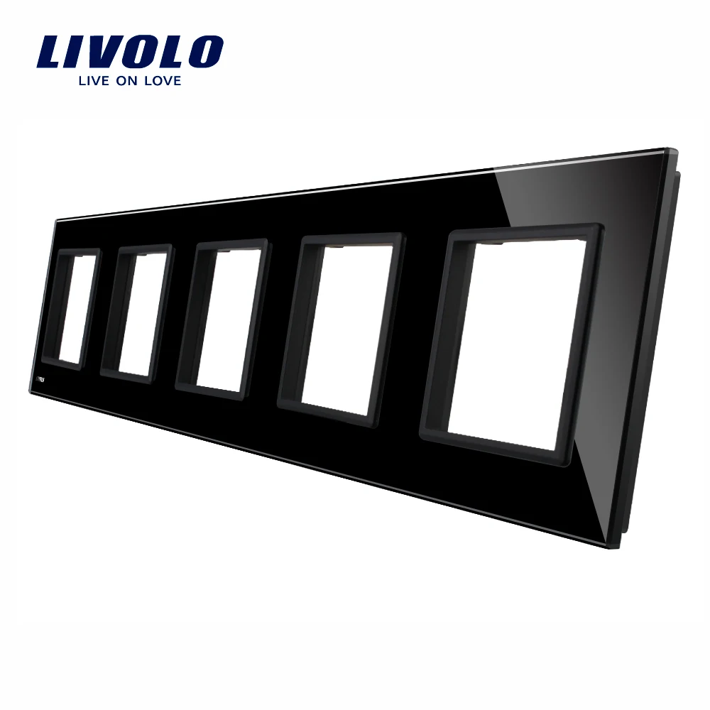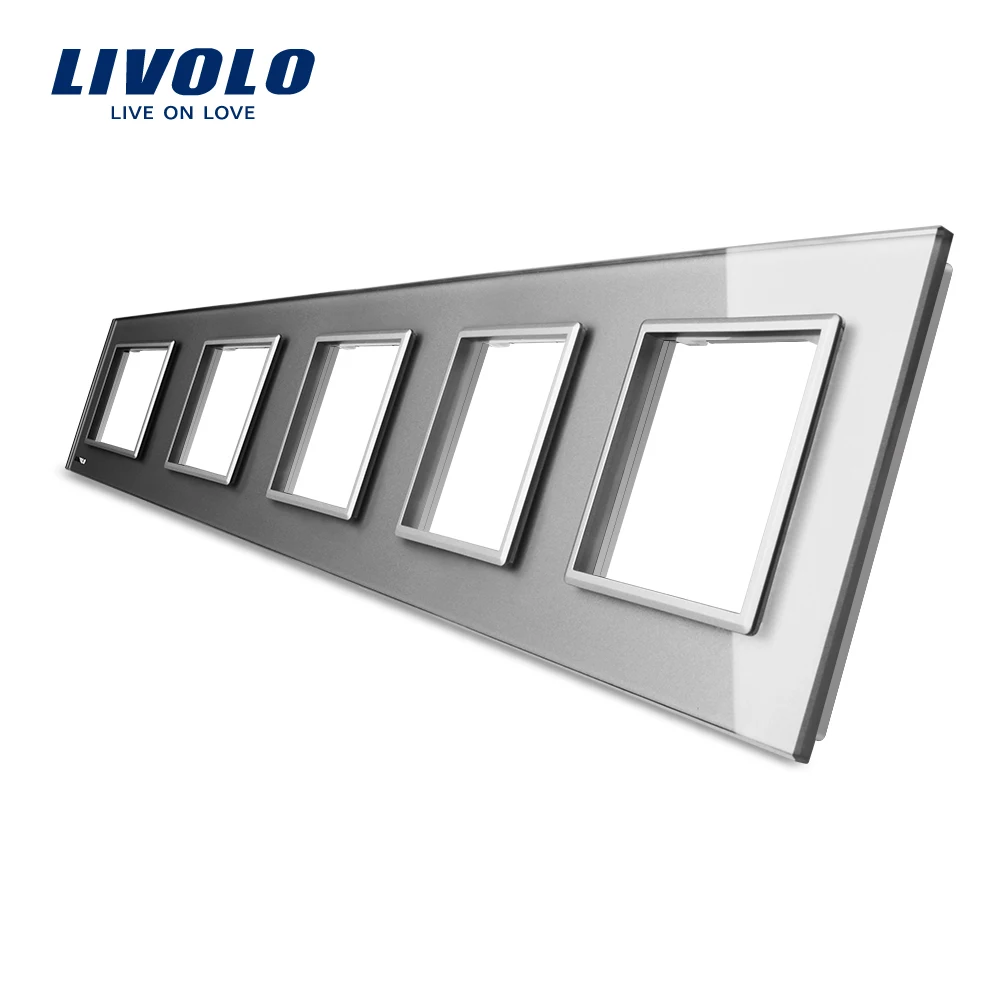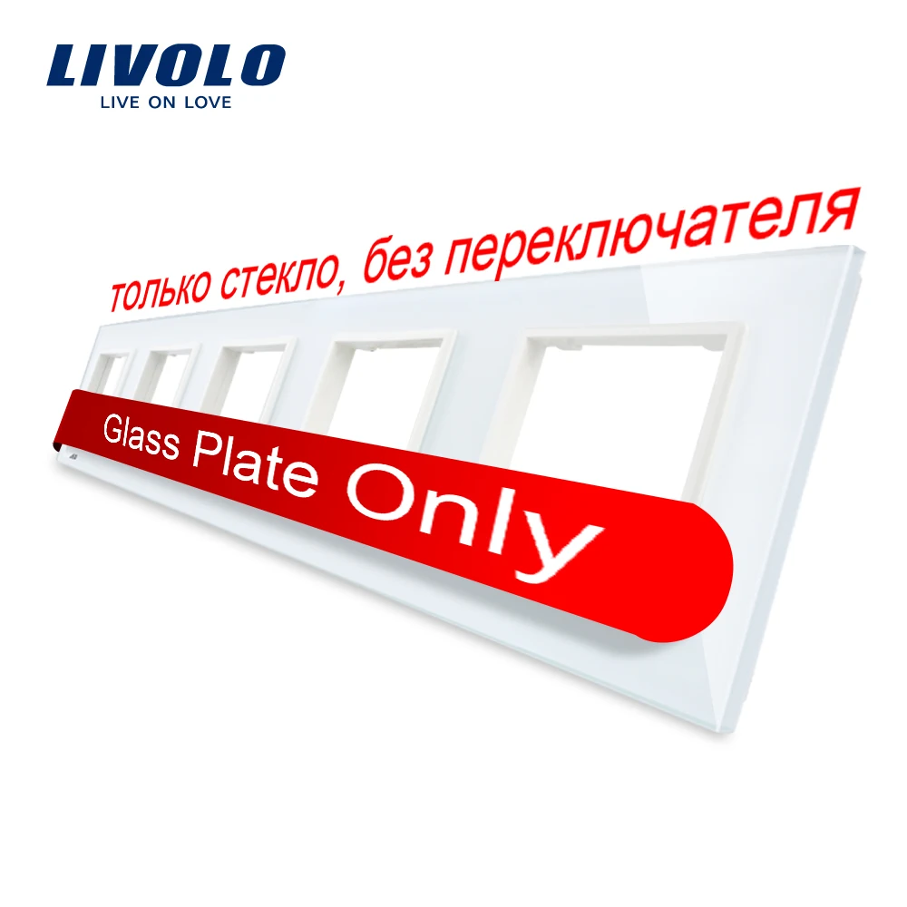 Comprar Livolo Luxo Cristal Branco Painel De Interruptores de Vidro, 364mm * 80mm, padrão DA UE, quintuplicar C7 5SR 11 Do Painel de Vidro Para Tomada de Parede Baratas Online Preço.
