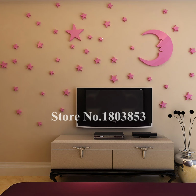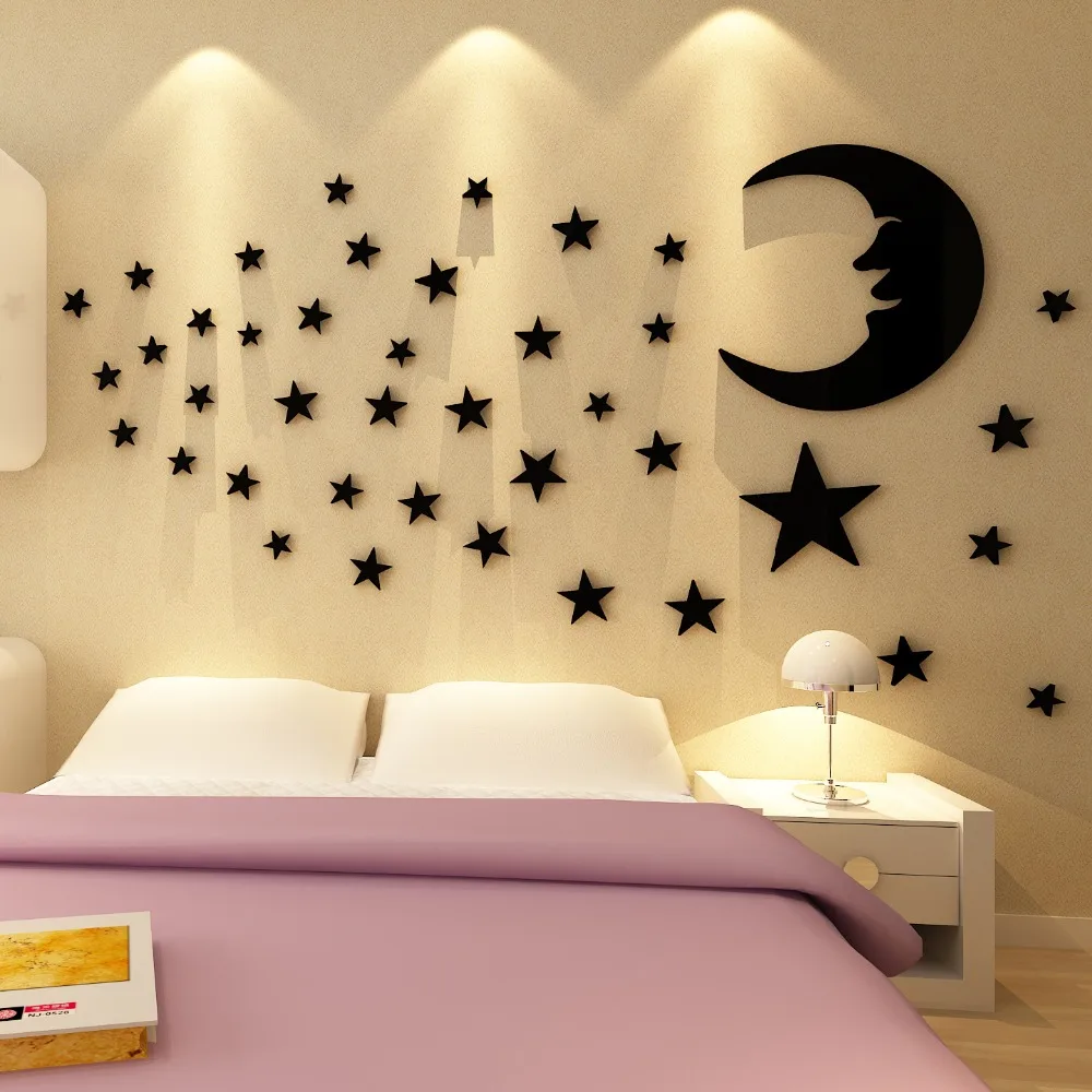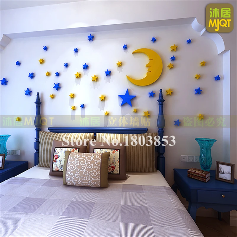 Comprar Lua e as estrelas dos desenhos animados 3d estéreo DIY adesivos de parede de cristal Moderna cenário decalques de Decoração Para Casa infantil quarto quarto acrílico Baratas Online Preço.
