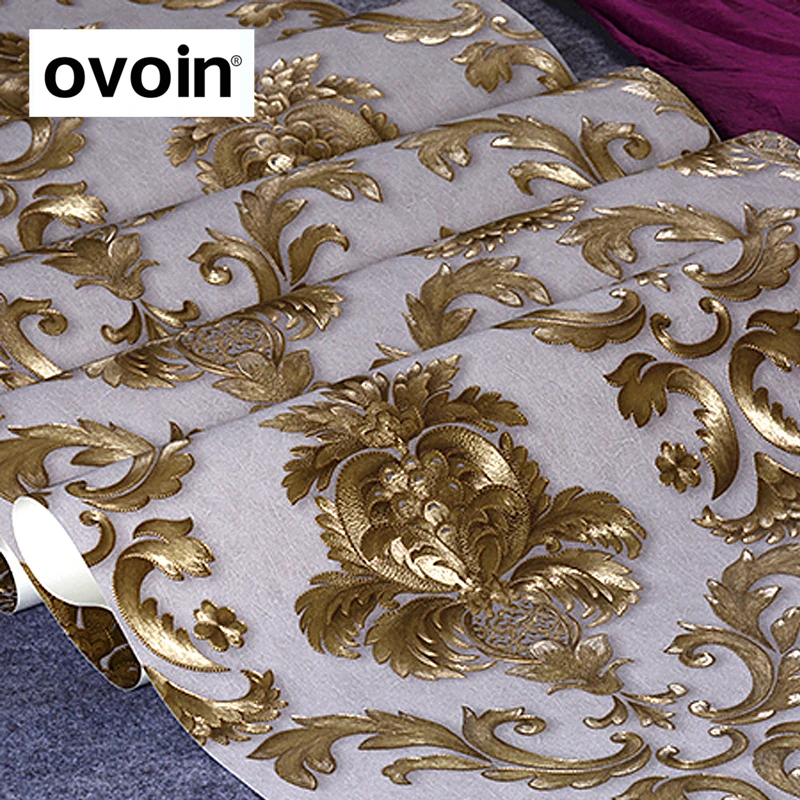 Comprar Luxo Glitter Ouro Floral Do Damasco Papel De Parede Texturizado Vinil Amarelo Grande Faixa de Damasco Quarto Rolo Papel de Parede Para Casa Sala Ao Vivo Baratas Online Preço.