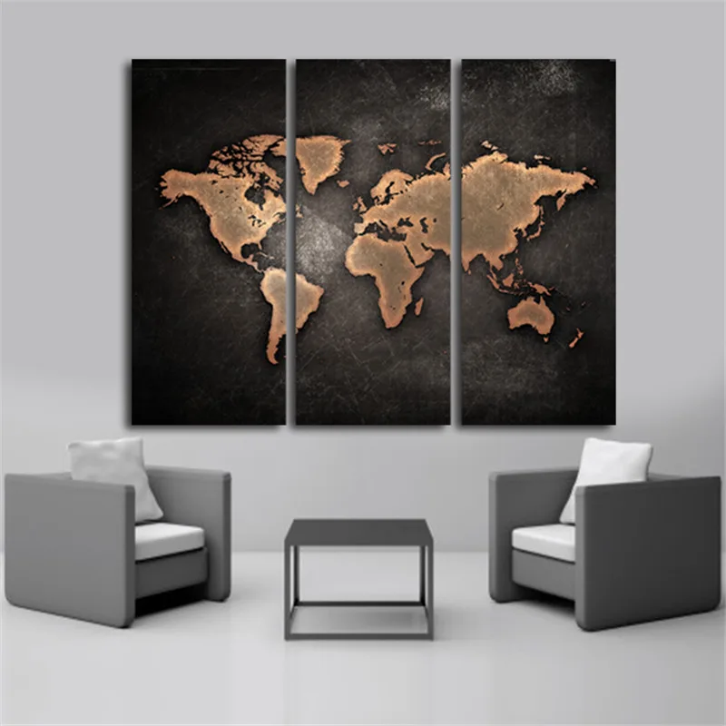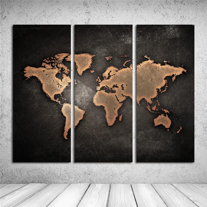 Comprar Nova 3 Pcs Preto Do Vintage Mapa Do Mundo de Impressão sobre Tela Abstrato Mapa do mundo Da Lona Pintura A Óleo Escritório Sala de estar Decoração Da Parede Imagem Baratas Online Preço.