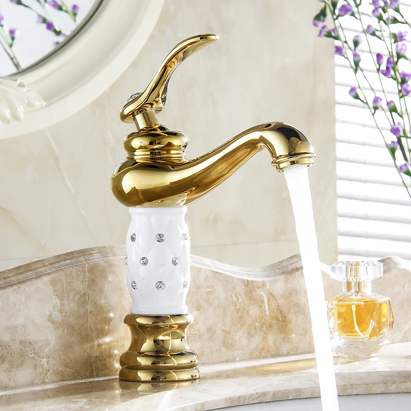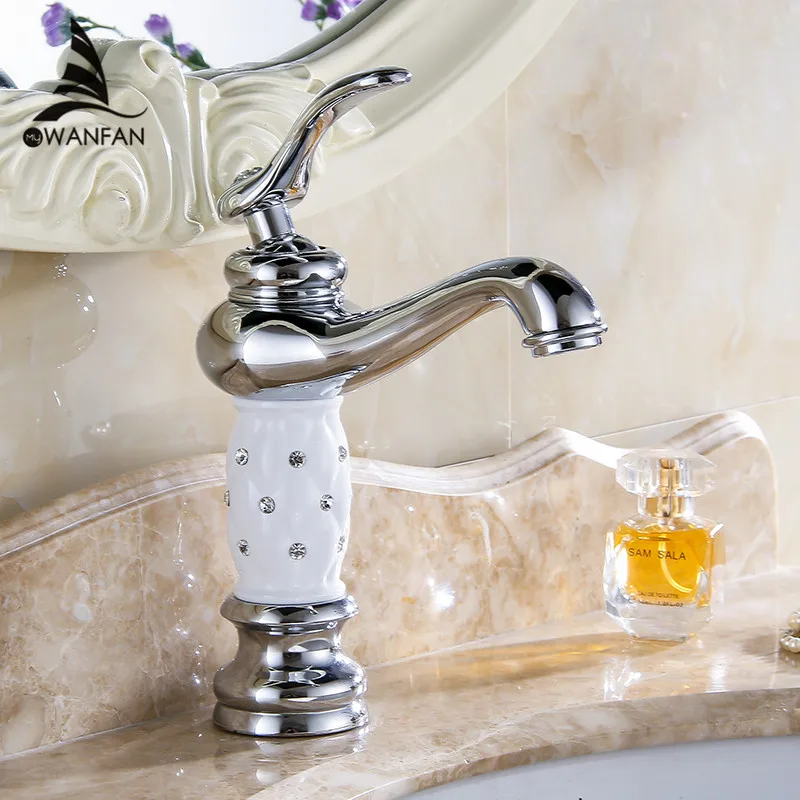 Comprar Torneiras de lavatório Cromo Torneira Pia Do Banheiro Design Criativo Cristal Deck Montado Único Furo de Água Quente e Fria Torneiras Misturadoras 815L Baratas Online Preço