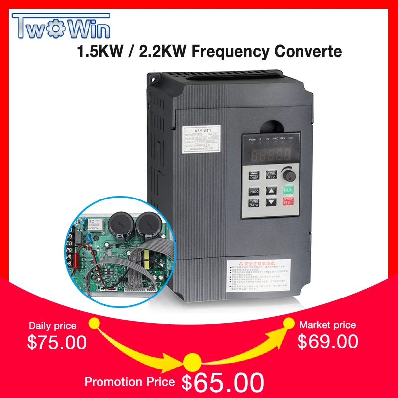 Comprar Twowin1.5KW 2.2KW 220 v Único fase de entrada do inversor VFD 3 Saída Fase Conversor de Frequência de Velocidade Ajustável 1500 w 220 v Inversor Baratas Online Preço.
