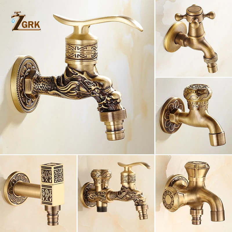 Comprar ZGRK Torneira Do Banheiro de Bronze Retro Tap Mop Máquina de Lavar Roupa Torneiras de Jardim Ao Ar Livre WC de Luxo Decorativo Antigo Torneira Da Cozinha torneira de Bico Curvo Baratas Online Preço