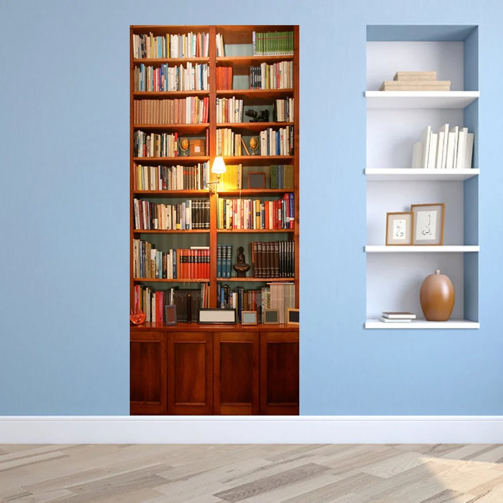 Comprar 2 pcs 3D Porta Estante Do Vintage Pintura Mural Da Parede Cartaz Papel de Parede Vinil Removível Adesivos de Parede para a Decoração Home 77*200 cm Baratas Online Preço.