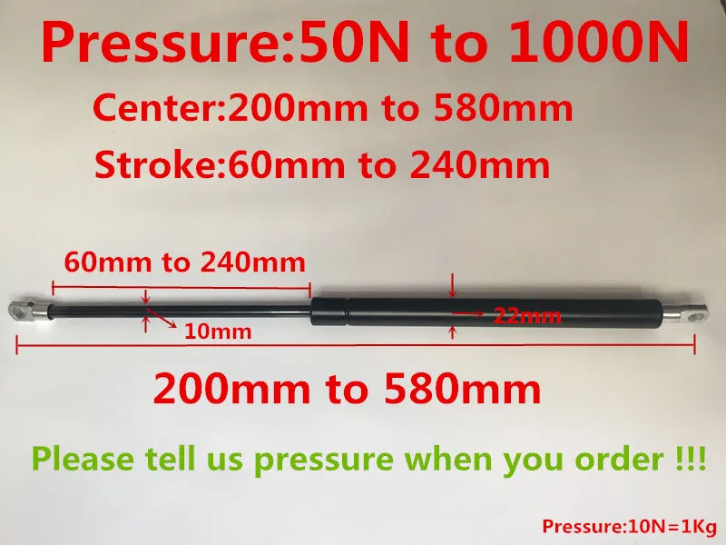 Comprar 2 pçs lote 50N para 1000N força 200 580mm de distância central, 60 240mm de curso, pneumático Mola A Gás Auto, elevação Prop Gás Primavera Damper Baratas Online Preço.