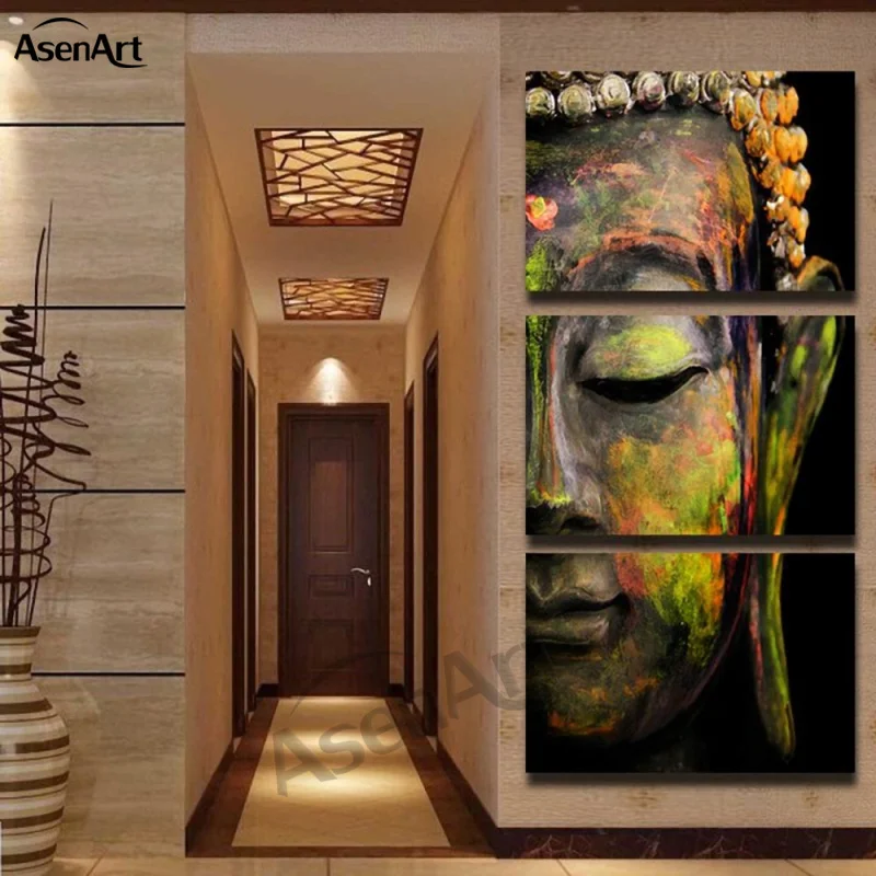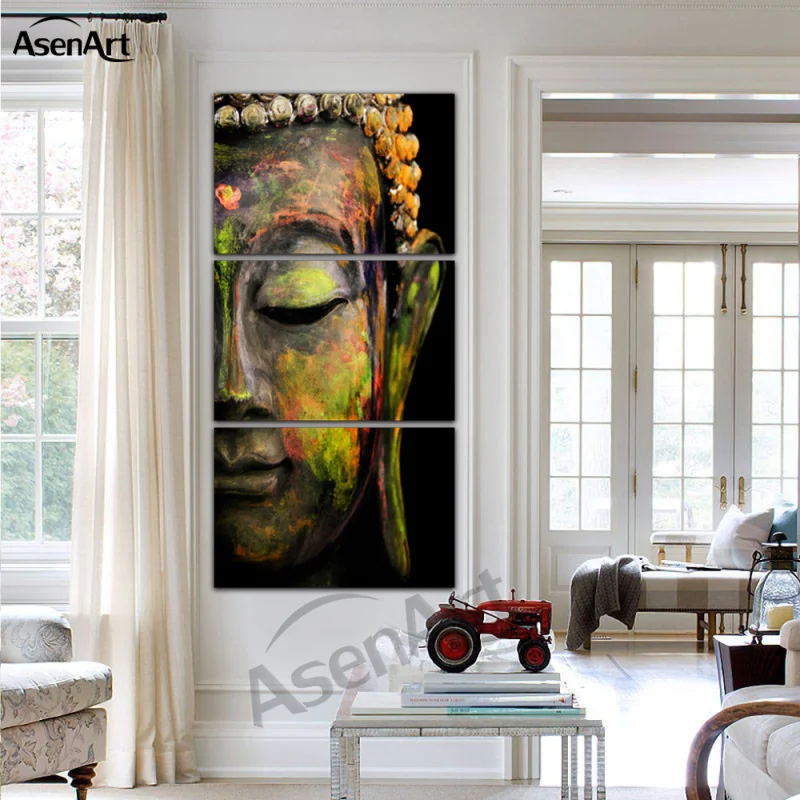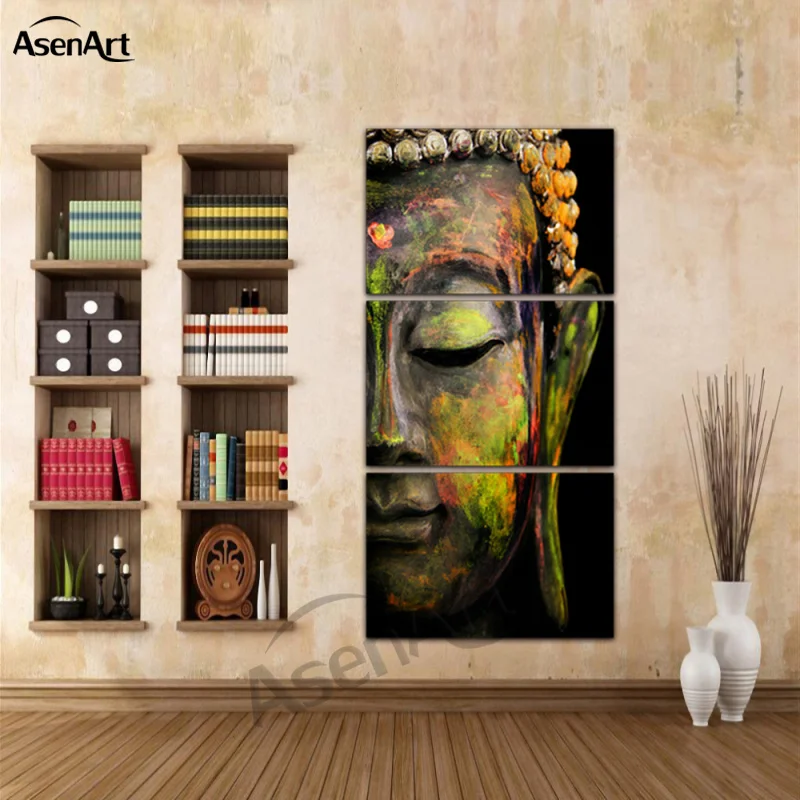 Comprar 3 Peças Conjuntos de Arte Moderna Buda Pintura Cópias Da Lona Pinturas de Parede para Sala de estar Decoração de Casa Arte Da Parede Sem Moldura Baratas Online Preço.