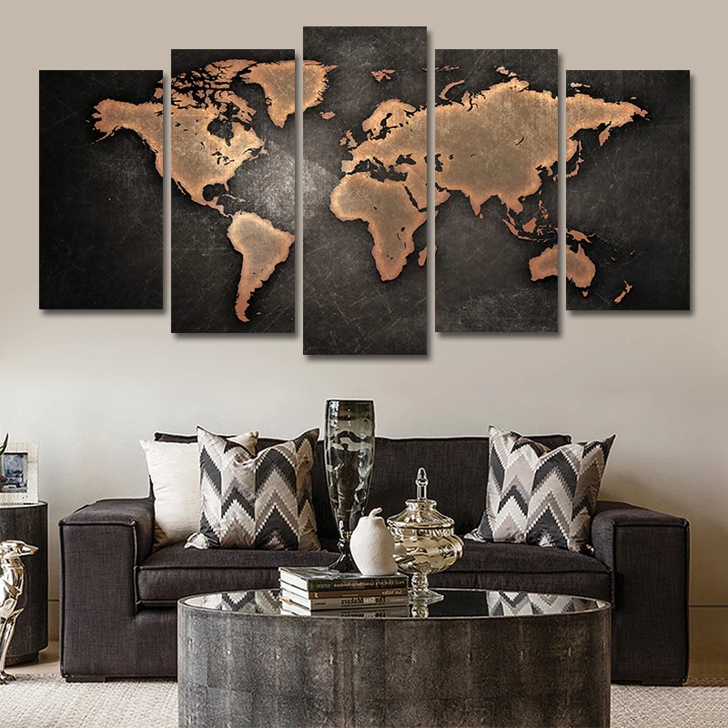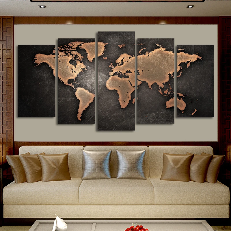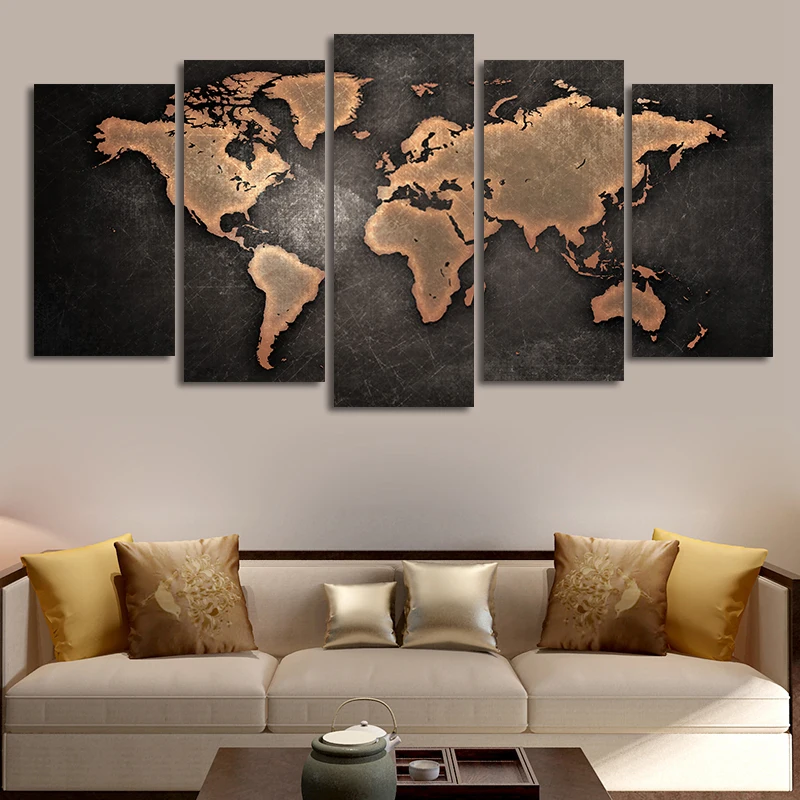 Comprar 5 pcs Abstratas Cartazes E Cópias da Arte Da Parede Da Lona Pintura de Parede Pictures Para Sala de estar Decoração Nórdico Mapa Do Mundo Baratas Online Preço.