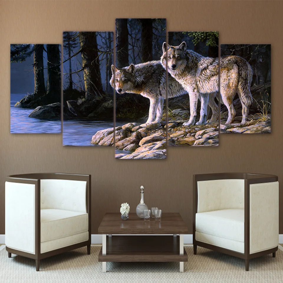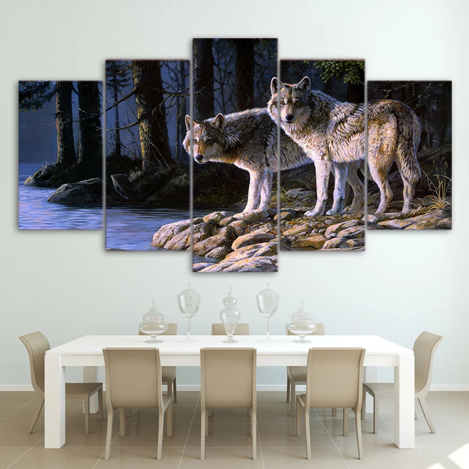 Comprar 5 peça HD Impresso Da Lona lobo Lobos Cartaz Impressão Da Lona de Arte Moderna do Retrato Da Parede para Sala de estar Home Decorativa Emoldurada Baratas Online Preço.