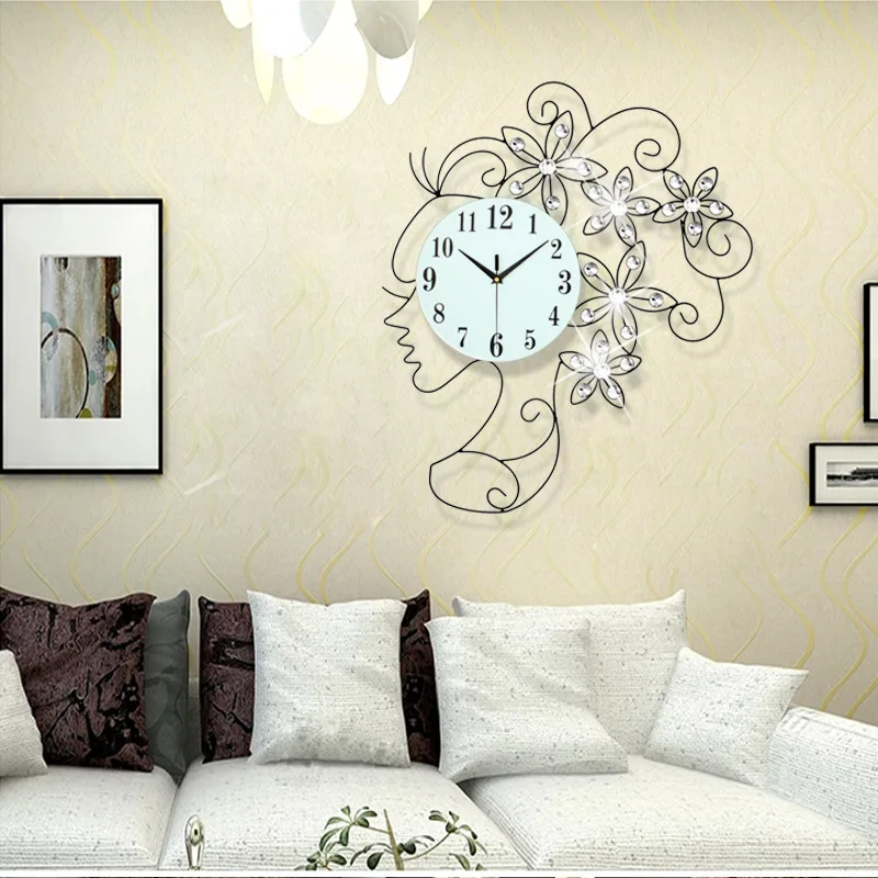 Comprar 65*50 cm Criativo Europeu Menina Bonita Ferro Arte Parede Da Sala do Relógio Decoração Moderna Relógios Baratas Online Preço.