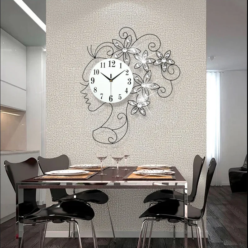 . Melhor 65*50 cm Criativo Europeu Menina Bonita Ferro Arte Parede Da Sala do Relógio Decoração Moderna Relógios Barato Online Preço.