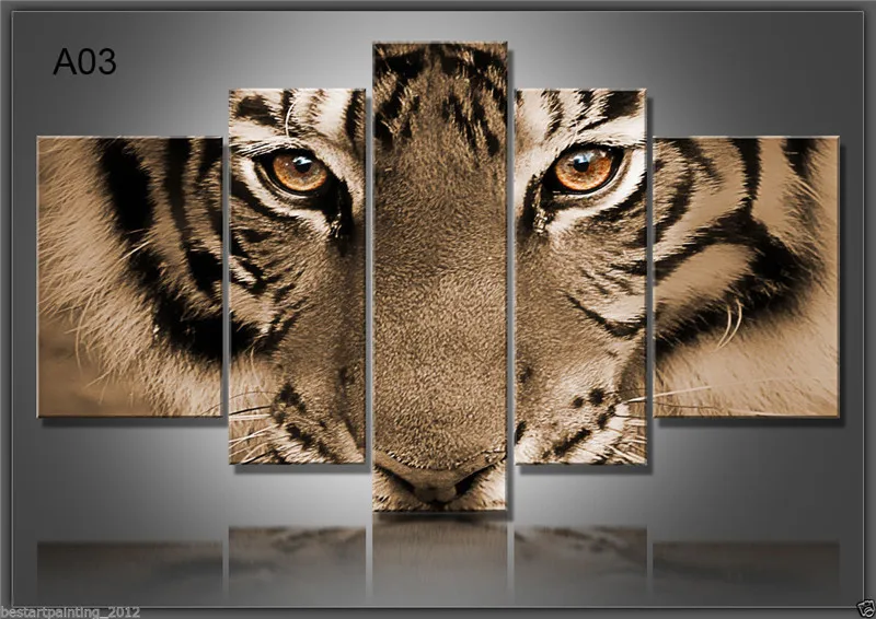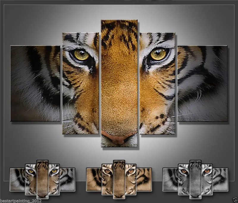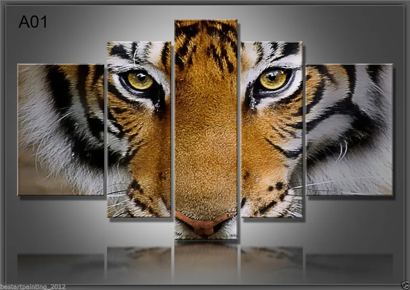 Comprar Arte da parede Da Lona Fotos Painting5 Painéis Pinturas Arte Moderna Cópias Da Lona Tigre Para Sala de estar Decoração de Casa sem moldura Baratas Online Preço.