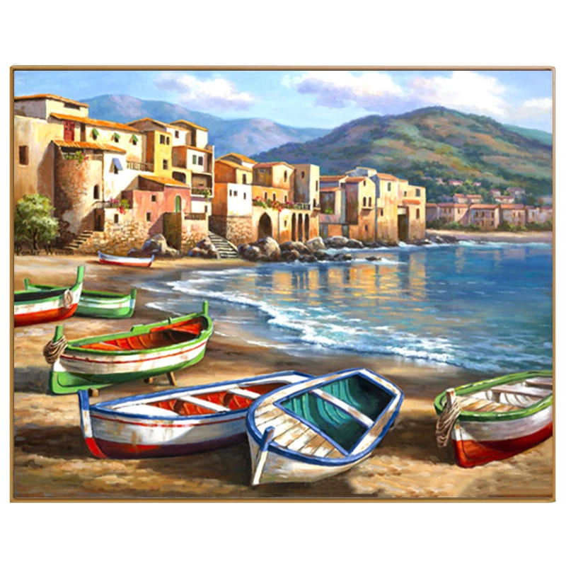 . Melhor Canoa PHKV Imagem Diy Pintura Por Números Paisagem Colorida Imagem Pintada À Mão Coloração Digital Pintura Da Decoração Da Parede de Acrílico Barato Online Preço.