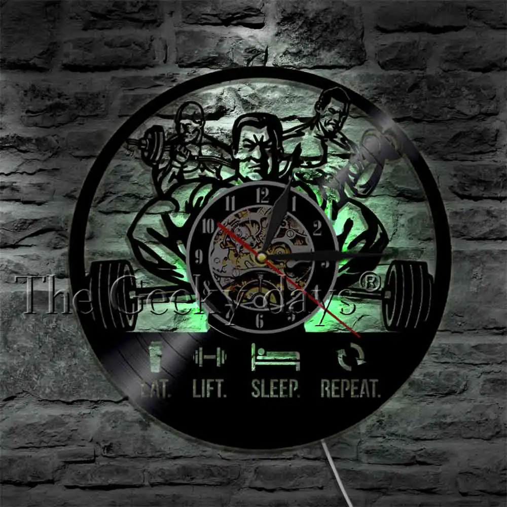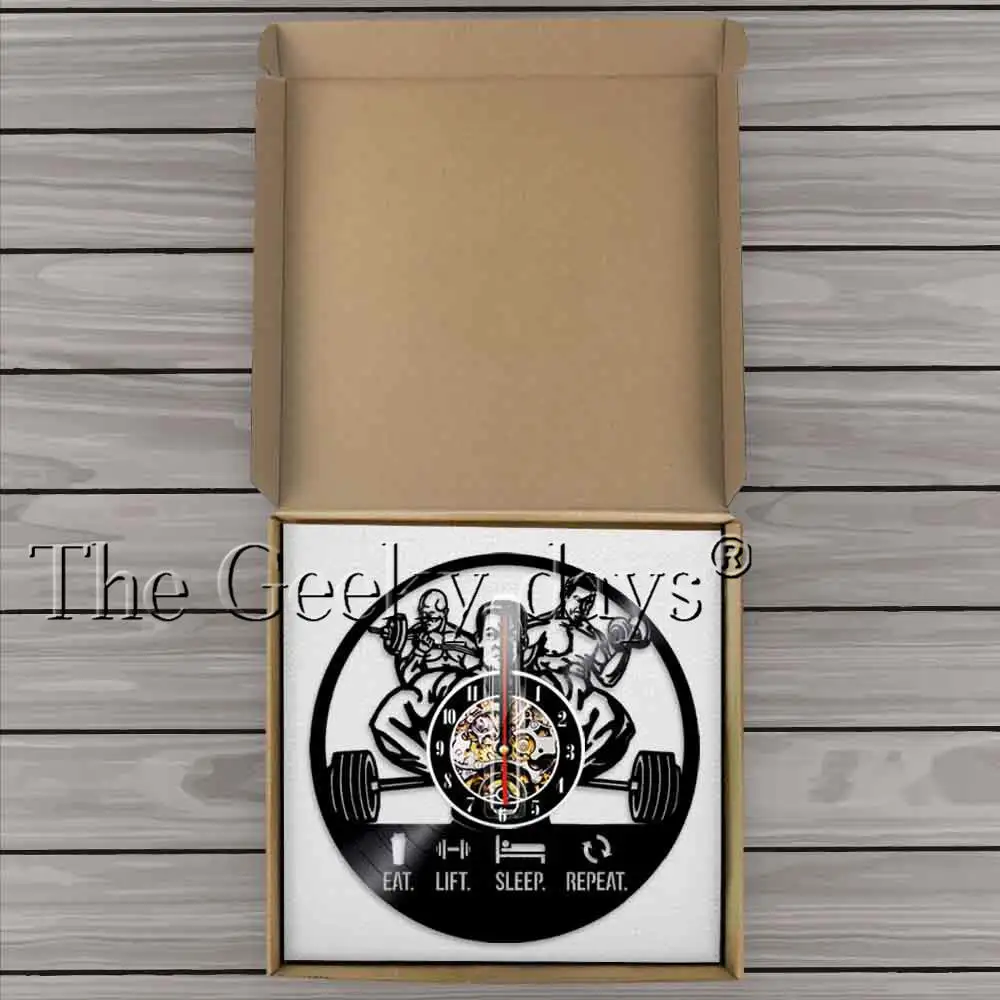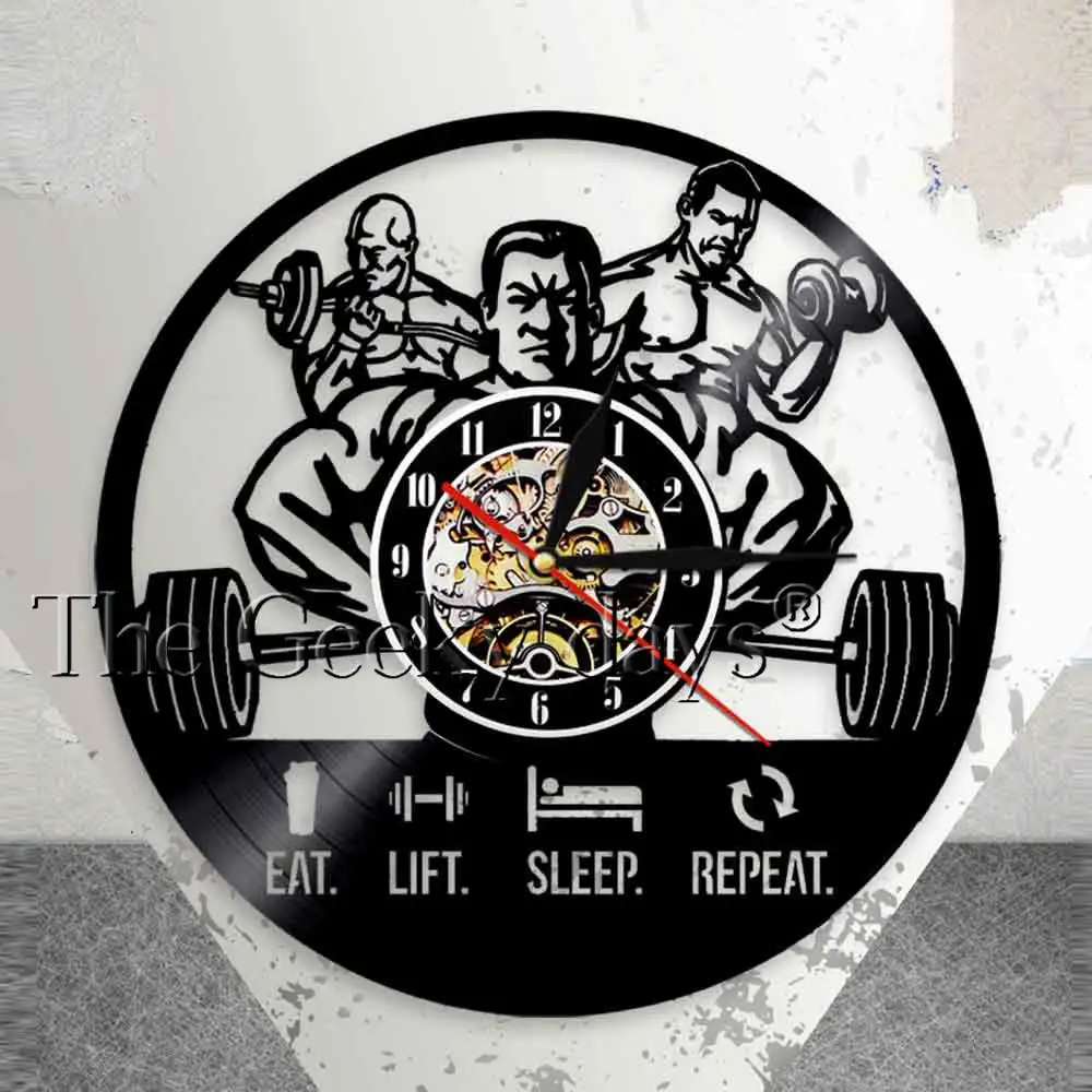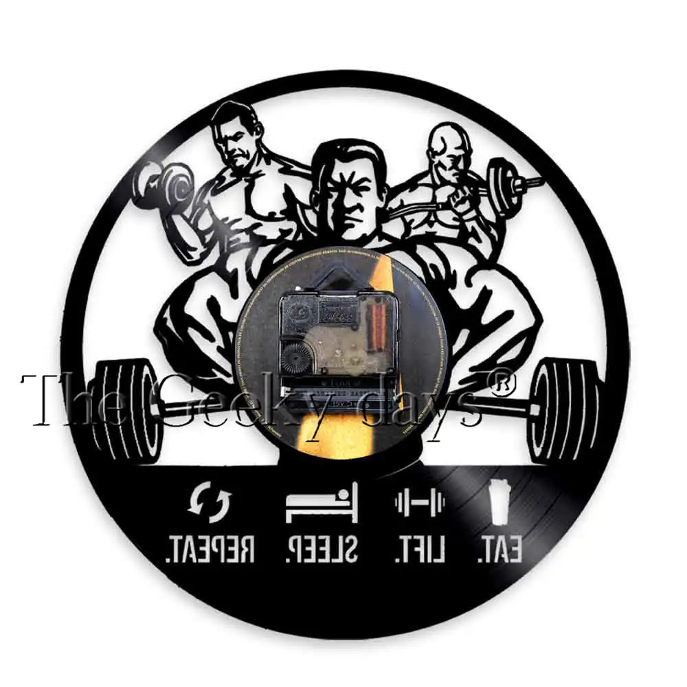 Comprar Comer Elevador Repetição Sono Mens Relógio de Parede Citações Inspiradas de Fitness GYM Workout Muscle Men Musculação Disco de Vinil Relógio de Parede Baratas Online Preço.