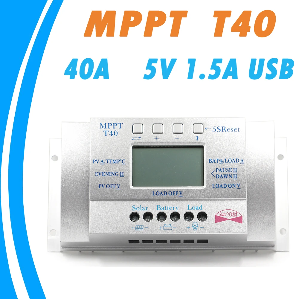 Comprar Controladores de Carga Solar 40A 12 V 24 V Auto com 5 V 1.5A USB saída de Luz e Temporizador de Controle de Carga Solar Regulador Painel LCD 40A Baratas Online Preço