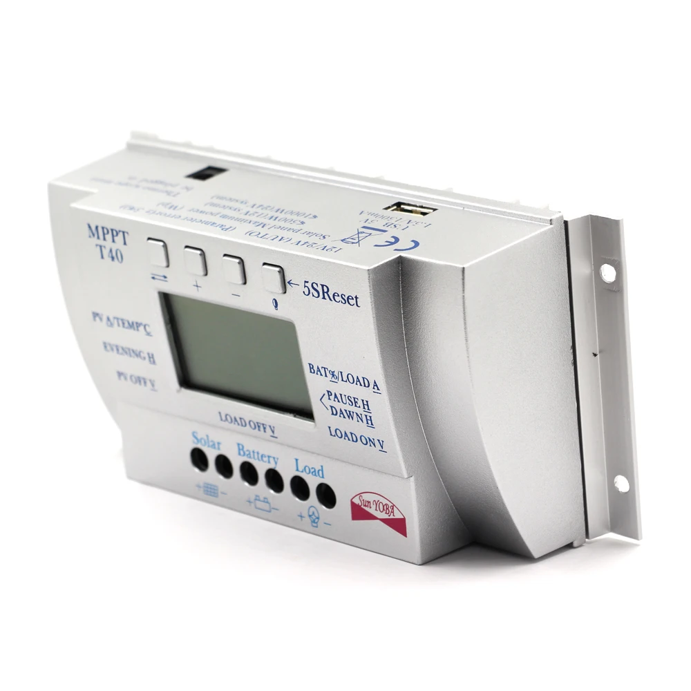 Comprar Controladores de Carga Solar 40A 12 V 24 V Auto com 5 V 1.5A USB saída de Luz e Temporizador de Controle de Carga Solar Regulador Painel LCD 40A Baratas Online Preço.