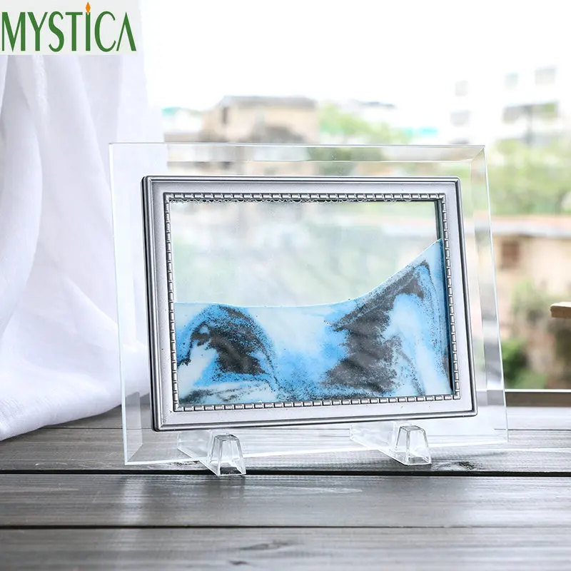 Comprar Enfeites para casa de vidro areia movediça fluxo criativo pintura de paisagem sala de escritório presentes de aniversário 3D ampulheta Decoração Baratas Online Preço.