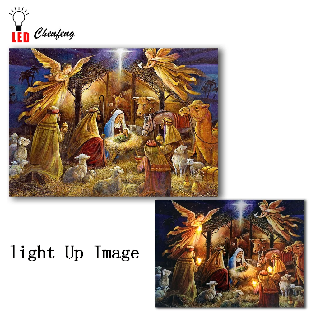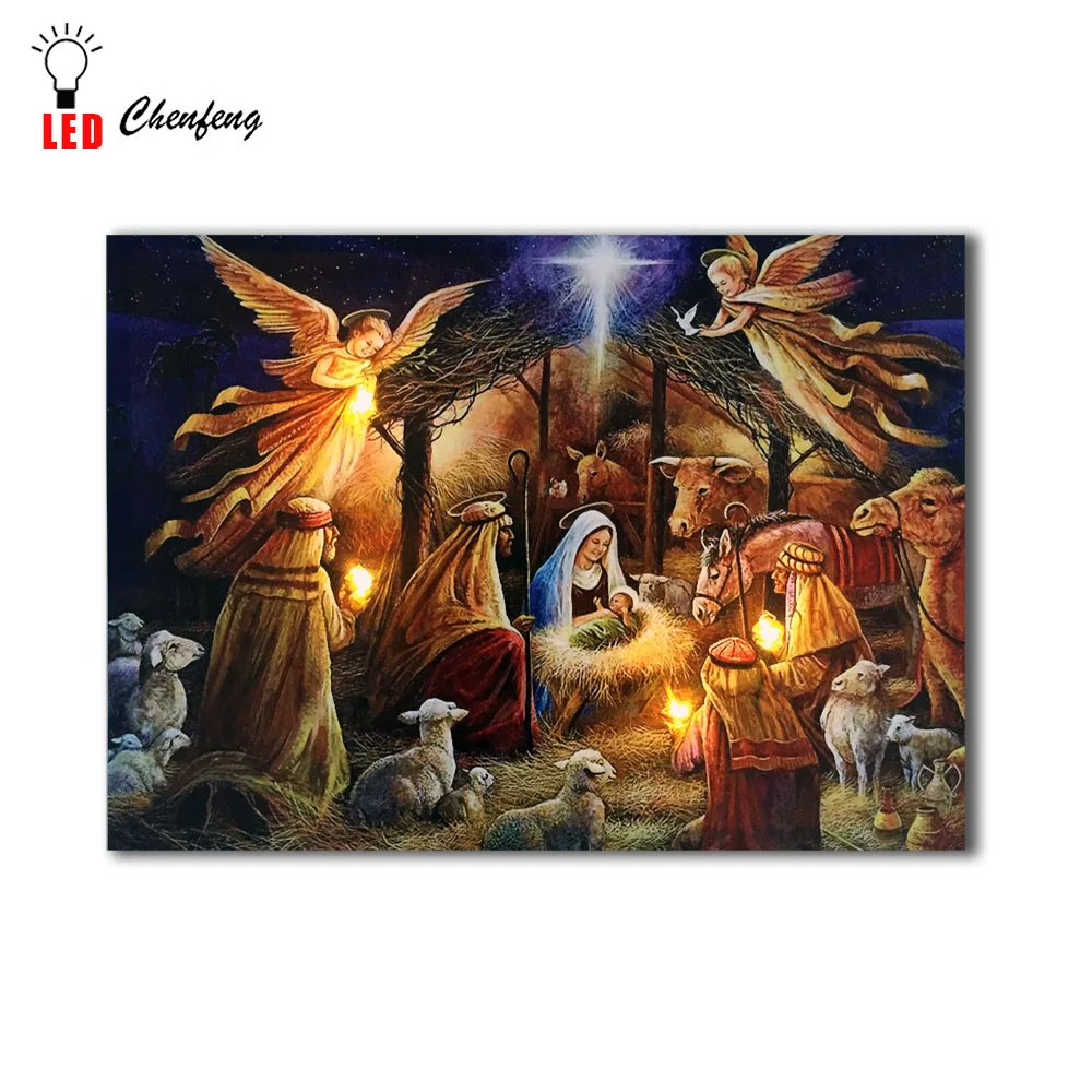 Comprar Led decorativa da parede da lona impressão jesus nascimento noite luz up cartaz e impressão Pintura A óleo sobre Tela decor hot sale barato Baratas Online Preço.