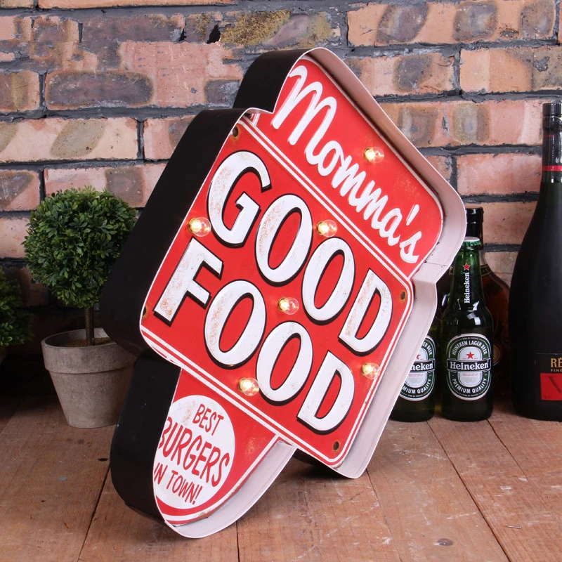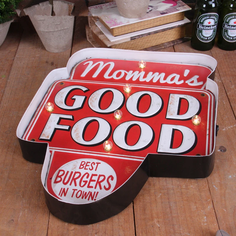 Comprar Momma Melhores Hambúrgueres da Boa Comida LEVOU Sinal Do Metal Do Vintage Decoração de Casa Tabuleta Para Loja de Comida De Restaurante de Cozinha Pendurado Neon sinais Baratas Online Preço.