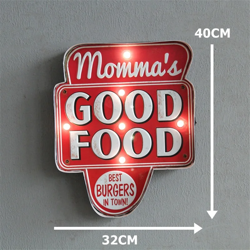 Comprar Momma Melhores Hambúrgueres da Boa Comida LEVOU Sinal Do Metal Do Vintage Decoração de Casa Tabuleta Para Loja de Comida De Restaurante de Cozinha Pendurado Neon sinais Baratas Online Preço