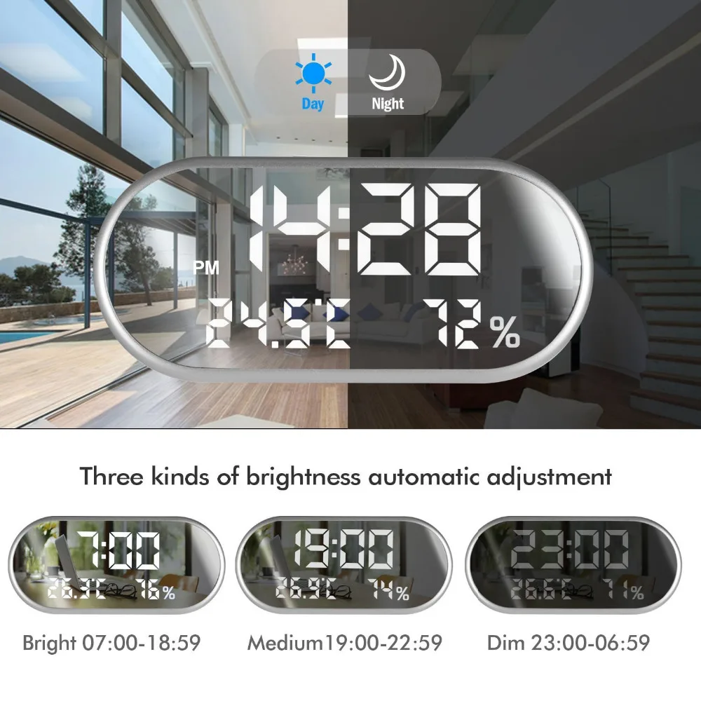 . Melhor Portátil Espelho HD Display LED Digital Relógio Despertador Com o Tempo Umidade Temperatura Display Função de Porta USB de Carregamento relógios Barato Online Preço.